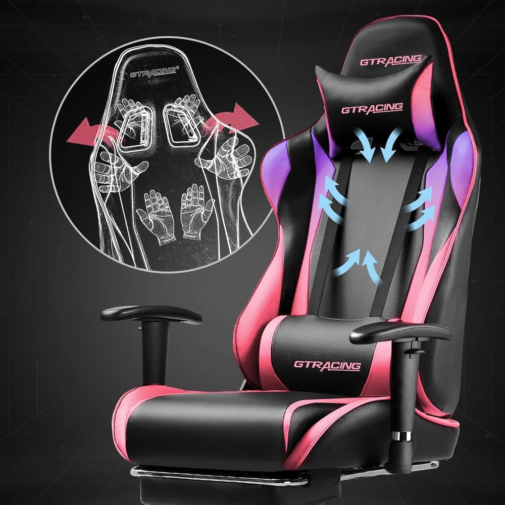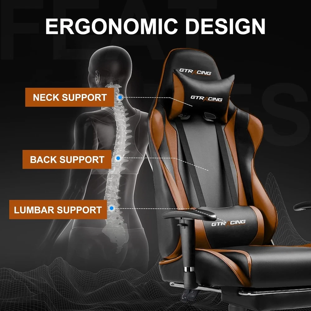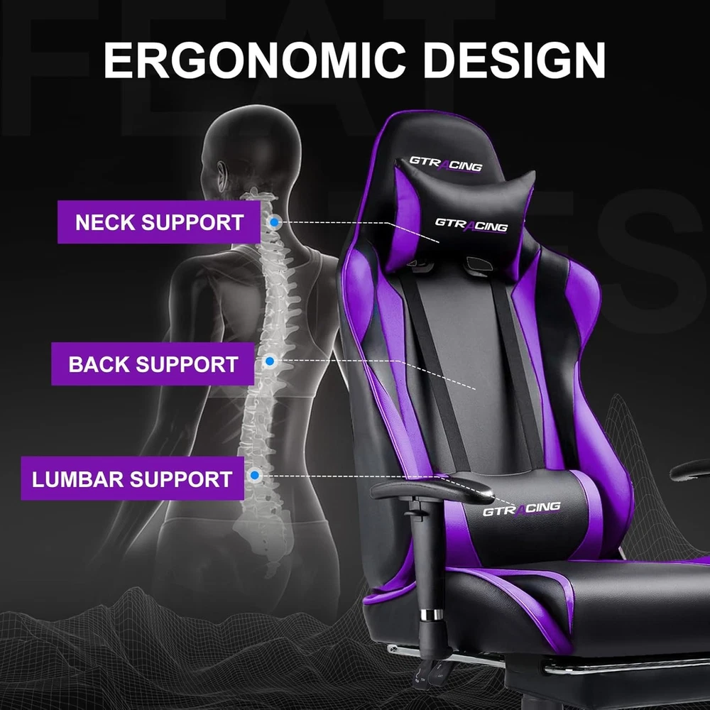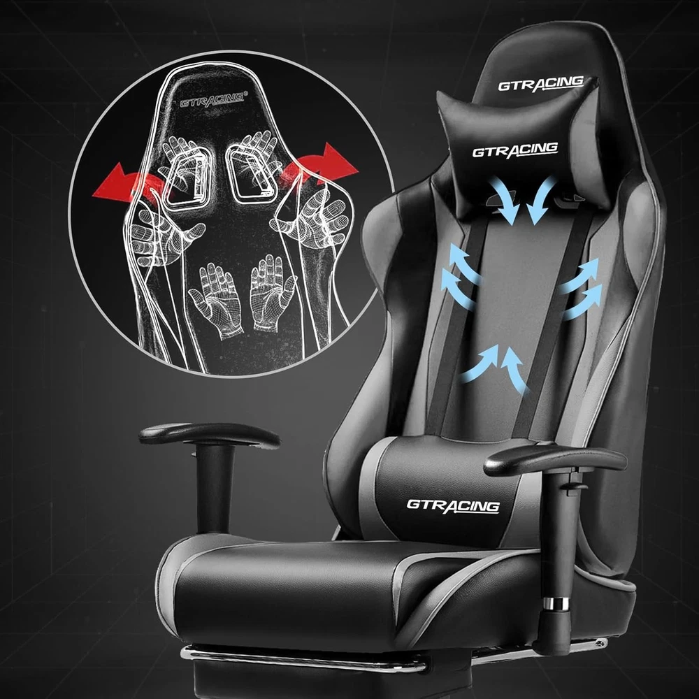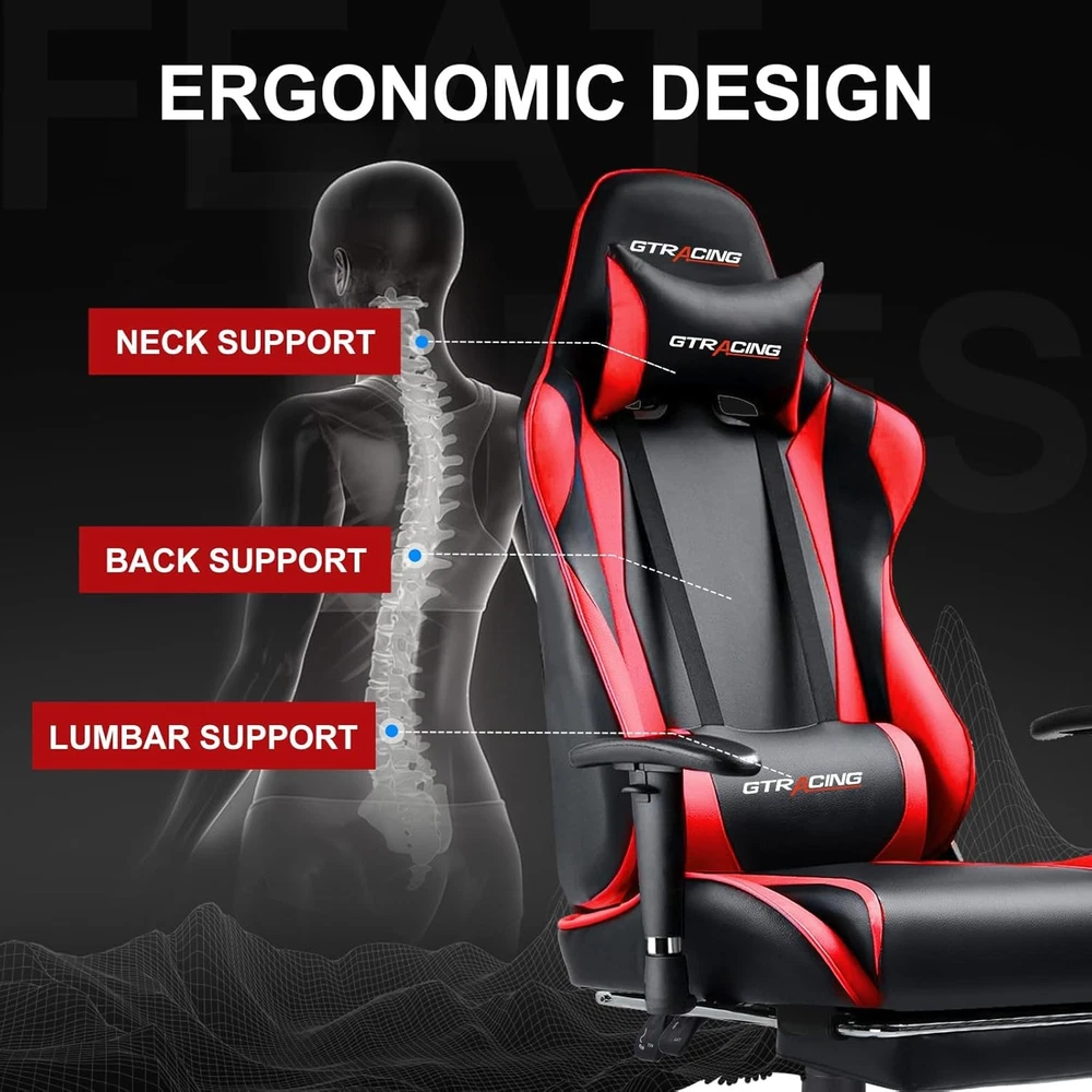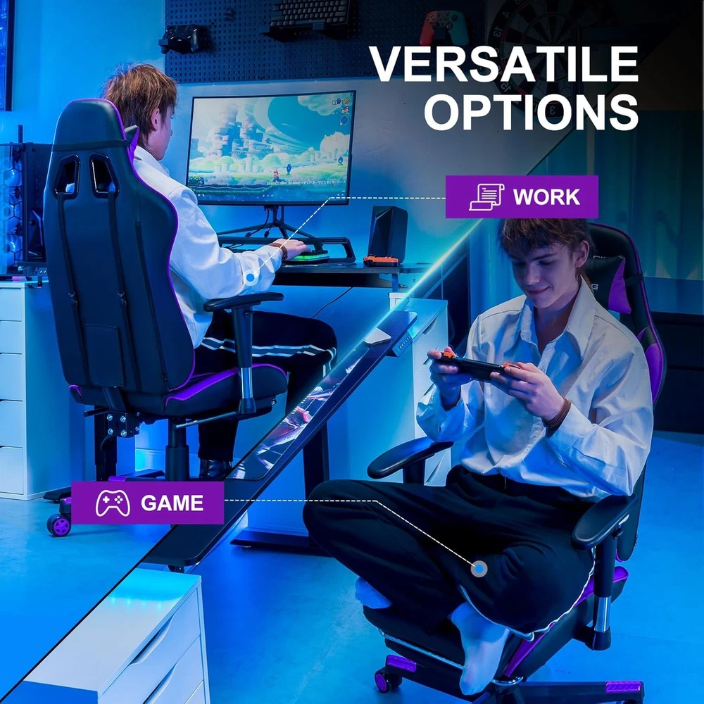 Gaming Chair with Footrest, Ergonomic Computer Game Desk Chair, Reclining Gamer