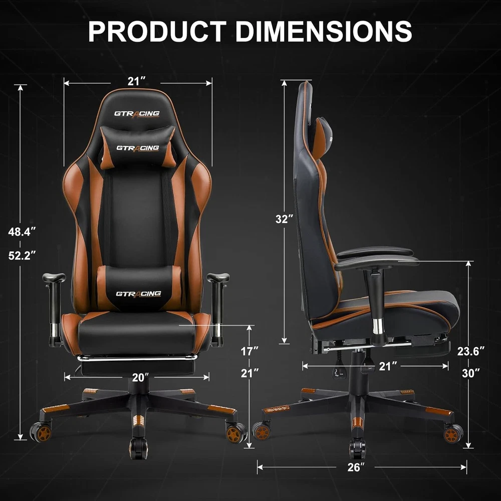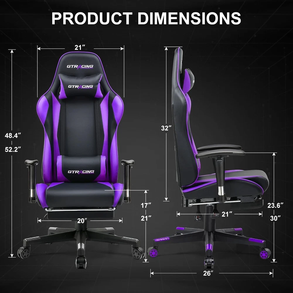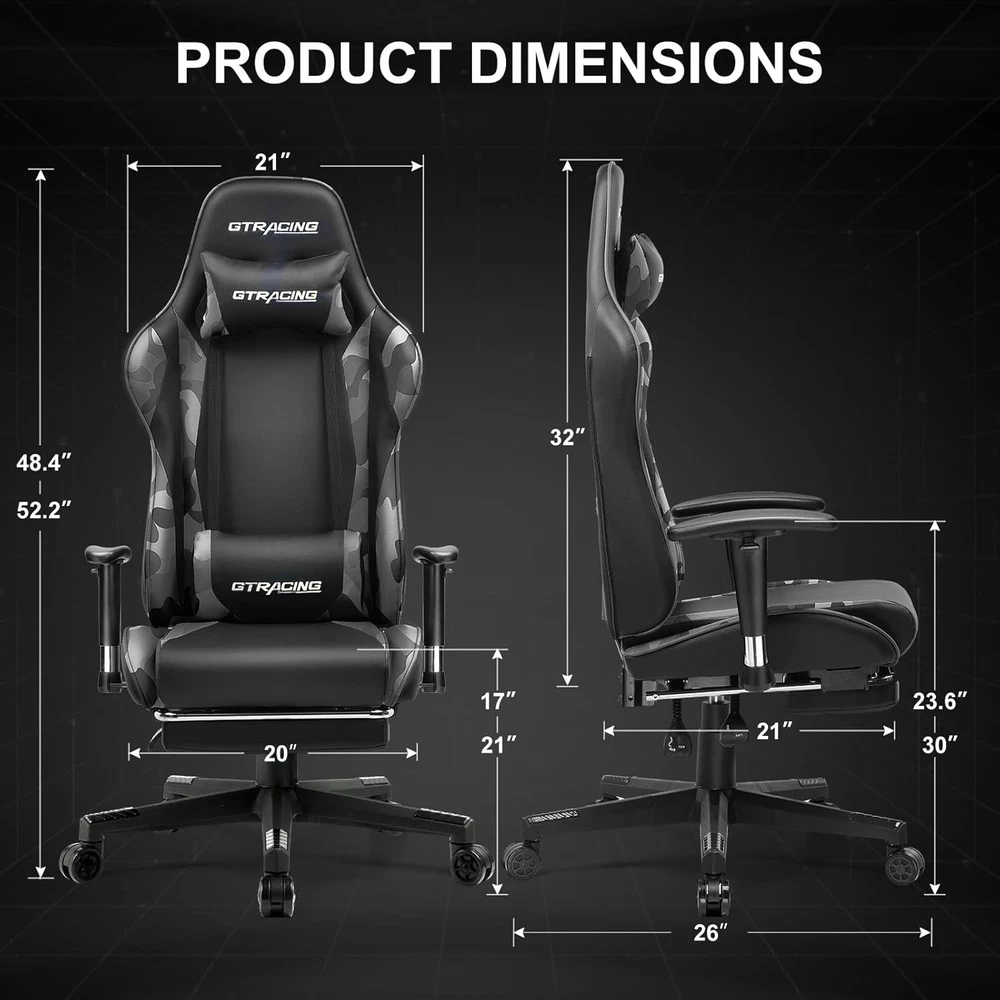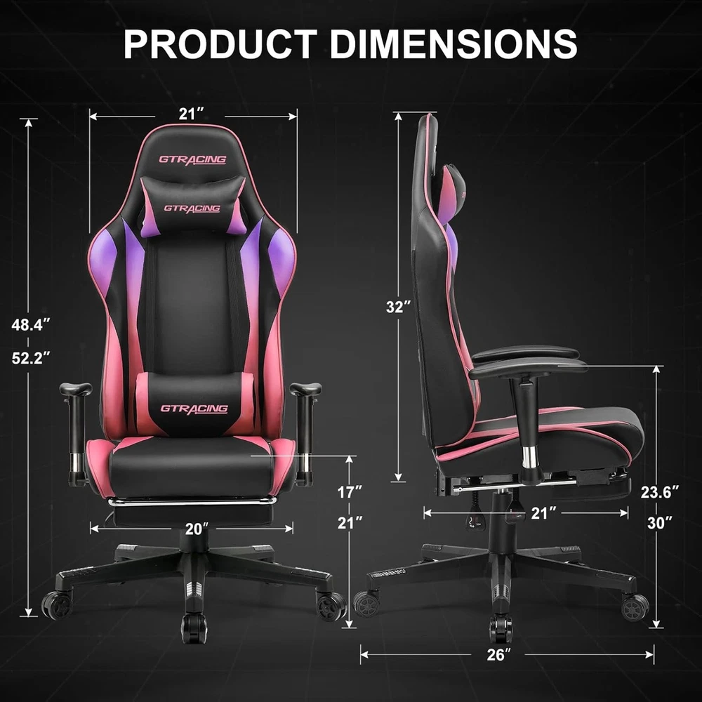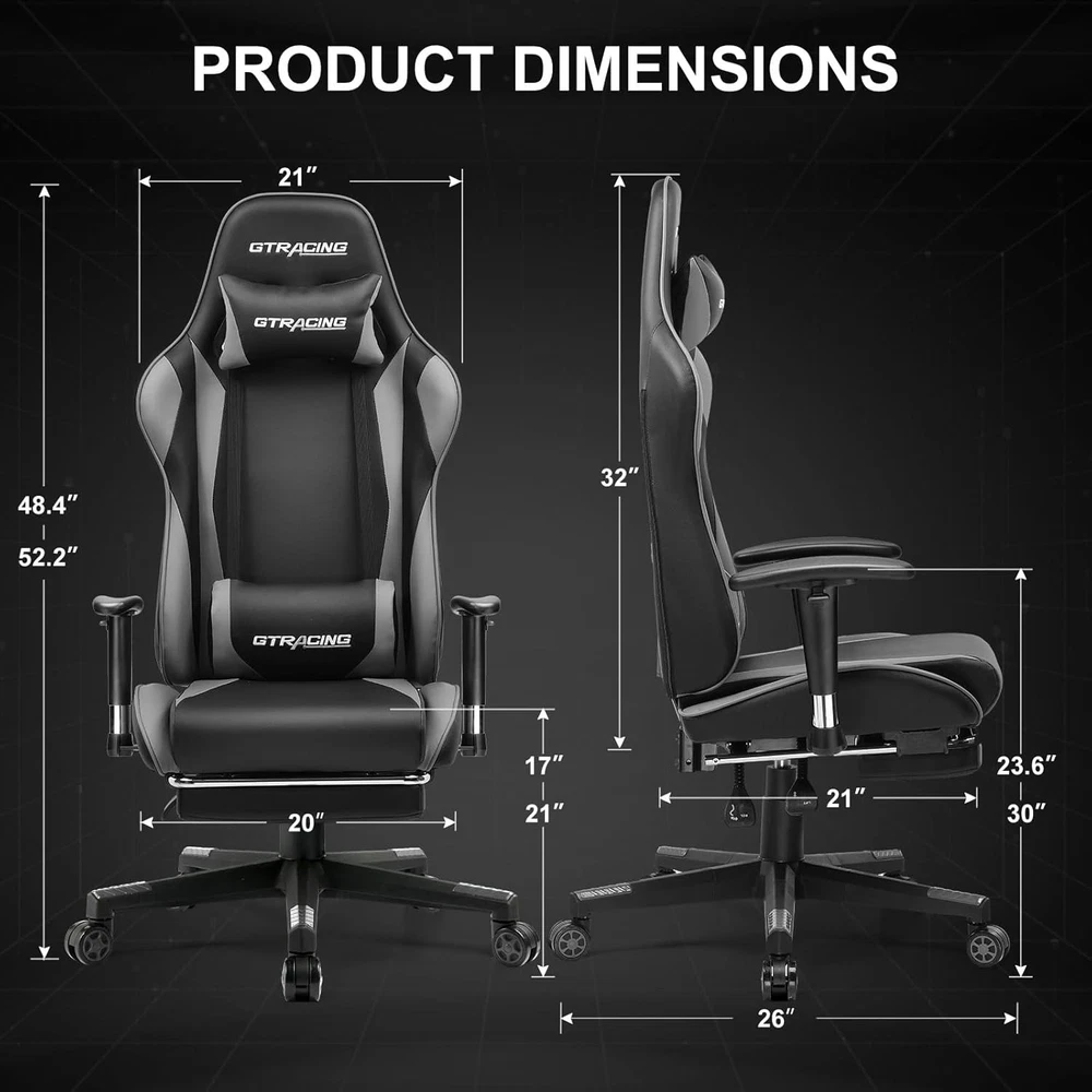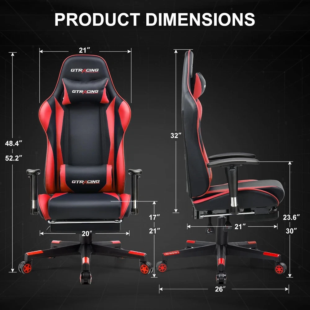 Included Components:ChairItem Length:22"D x 22"W x 47"HFill Material:SpongeFinish Type:BrushedProduct Care Instructions:Wipe CleanItem Weight:30Type:ChairSize:gaming chairUnit Count:1.0 CountFurniture Finish:LeatherBack Style:Solid Backitem_weight_unit_of_measure:LBCushion Style:Square-shaped or Round-shapedItem Width:22"D x 22"W x 47"HLeg Style:Straight LegModel Name:GT002NAF-2025Age Range (Description):AdultRecommended Uses For Product:GamingFurniture base movement:SwivelRoom Type:Game Recreation RoomIncluded Throw Pillow Quantity:2Item Height:22"D x 22"W x 47"HIndoor/Outdoor Usage:IndoorStyle:Racing-styleDate First Available:July 31, 2023Surface Recommendation:Hard FloorMaximum Weight Recommendation:100 PoundsShape:S-ShapeSpecial Feature:Arm Rest, Cushion AvailabilityAssembly Instructions Description:Included with productReclining Position Count:MultipleTilting:YesArm Style:With armsbrand:unbrandedForm Factor:Recliner