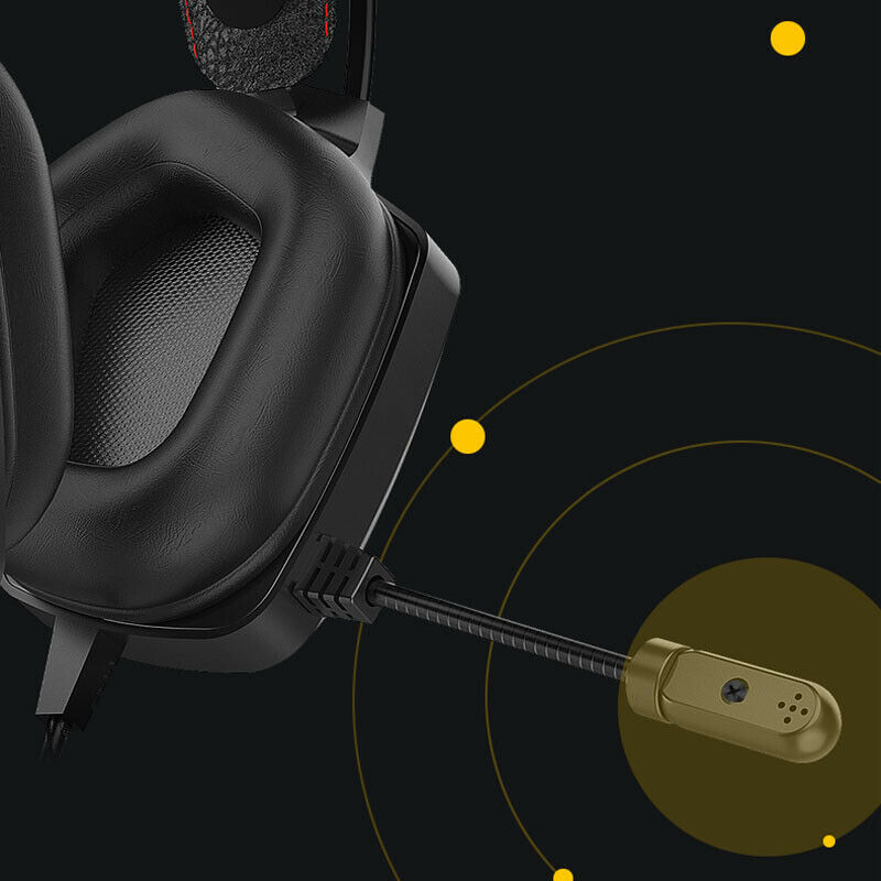 Features: 1. Single side USB interface, drive-free design, plug directly to use. 2. Built-in sound card, USB 7.1, excellent sound quality, bass surge, realistic game experience. 3. Handle ear shell with reticulated PVC LED red effect light, highlighting the technology sense. 4. Ergonomic ear-covering desigh, soft leather earmuffs, comfortable to wear. 5. Hose gooseneck mic rod, retractable, adjustable. Angle bending, all pointing to the sound. 6. Head beam expansion adjustment. 7. Suitable for Windows 7, 8, 10, RT & Mac OSX and other systems. PS4 laptops and desktops also works with. Specification: Type: Ear-Cup (Over the Ear) Mic diameter: Ø 6.0x2.7 mm Microphone Type: On-Cable Number of Earpieces: Double C able Length: 7.5 ft Color: Black Sensitivity: -38±3 db Max Input Power: 100mW Directivity: Omnidirectional Impandance: 16Ω Frequency Response: 20~20000 Hz Working Current: 100 mA Plug Type: USB Package Included: 1 x Gaming Headphone 1 x User Manual
