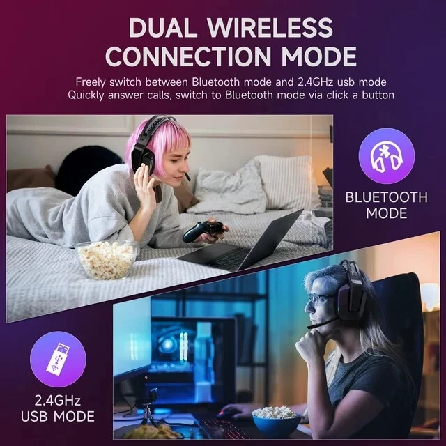 - Brand New - Never Used - Questions: Feel free to ask any Questions - BOX: Never Opened - DESCRIPTION:EasySMX C09W wireless gaming headset with 3 connections mode, 2.4G/Bluetooth/Cable, It is compatible with most gaming device, such as PC, PS4, PS5, Nintendo Switch, Xbox Series, and it is lower latency, doesn't affect gaming experience, 1000mAh battery support for 35-40Hrs long game time, at same time, the C09W combines with cool RGB lighting effects, which enhances the overall beauty and allows you to experience various scenes in the game more immersive.with the customized 50mm drivers, maximizes the accuracy for the specific sound * Invincible Compatible with Device: The 2.4G mode of C09W gaming headset can be connected to PC, PlayStation4, PlayStation5, Mac, laptop, Nintendo Switch via the dongle. Bluetooth mode can be connected with Mobile, Tablets and other Bluetooth devices.3.5mm audio cable mode can be connected with XBox Series. * Long-lasting Battery Life: C09W gaming headset optimizes the overall design to save battery power. It has a longer game time of 35-40Hrs. With cool RGB lighting effect turned on(15-20Hrs). Full-recharge in just 3Hrs. * RGB Lighting Effect: C09W combines with cool RGB lighting effects, which enhances the overall beauty and allows you to experience various scenes in the game more immersive. * Always Be a Winner: with the customized 50mm drivers, maximizes the accuracy for the specific sound like weapon fire, gunshot, etc., and attains a full range of audio from deep bass to sonic highs * Ergonomic Design: Lightweight design, adaptive ear shells, no pressure on the ear, with memory foam ear cups, heat dissipation and breathability. - OFFERS: Reasonable offers are considered, LOWBALLERS, Best price and Lowest askers will be ignored - all sales final/no refunds/ no exchanges/ no returns - Disclaimer: I do not own the brand's trademarks, logos, pictures, or products posted. I do not intend to infringe on copyright. I find such content available on the internet. Contents are considered fair use. -EasySMX C09W Wireless Gaming Headset, Bluetooth Gaming Headphones with Suspension Headband, RGB Lighting, Compatible with PC, PS4, PS5, Detachable Noise Cancelling Microphone, Black