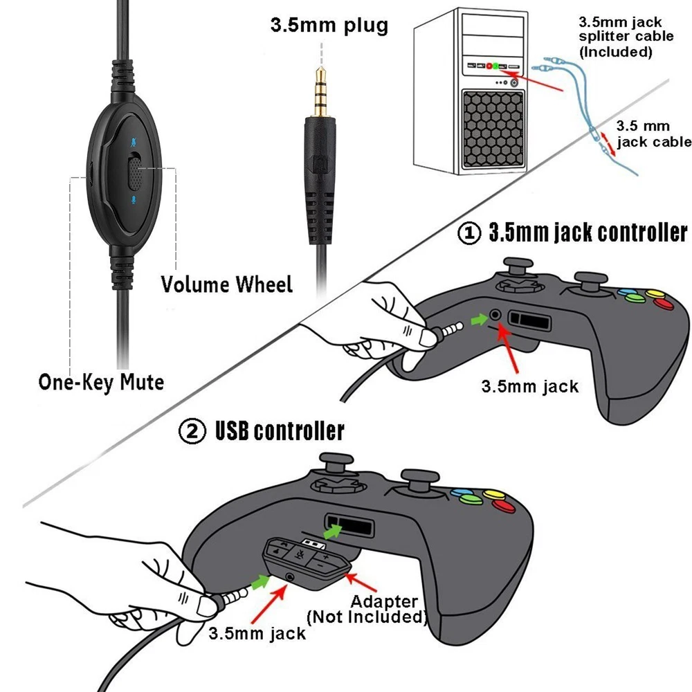 Gaming Headset for Nintendo Switch, Xbox One, PS4, PS5, Bass Surround and Noise 【Multiple Platform Compatibility】 This gaming headset employs a 3.5mm 4Pin audio jack that is perfectly compatible with Nintendo Switch lite/3DS, PS5, PS4, PS4 Pro/Slim, Xbox One, Xbox One S/X, PC, Laptop, Computer, Tablet, Mobile Phone. (3.5mm Splitter Cable Included) 【Decent Surrounding Sound】 With immersive stereo sound delivery, the gamer can immerse himself in the game and enjoying the optimal gaming experience with this PC headset. You can hear enemies' subtle footsteps without any laggy or distortion. This kids Headphone is also suitable for teaching, meeting, chatting, and streaming, the best choice for your kids 【Noise Canceling Microphone】 This gamer headset provides an excellent omnidirectional microphone that can pick up sound sensitively while reducing background noise, which enables you to talk and hear clearly in a game like Fortnite, PUBG, or CS:GO. With the in-line control mute function, you can easily mute when you want to 【Great Ergonomic Design】 Designing for long-term wearing, this boys headset uses Superior comfortable over-ear pads and a self-adjusting head beam to provide you a cozy gaming experience. Our ingeniously ergonomic design can reduce hearing impairment and heat sweat, more healthy and comfier 【12-Month Warranty】 Buy this gaming headphone with confidence! 12 Months warranty provided to guarantee your shopping experience. Any questions or problems, just feel free to contact us! We are sure to make a reply within 24 hours and provide satisfying solutions Why choose this Masacegon gaming headset? 1. Versatile compatibility, this gamer headset is compatible with Nintendo Switch/3DS, PS4, PS4 Pro/Slim, Xbox One, Xbox One S/X, PC, Laptop, Computer, Tablet, Mobile Phone. 2. This noise canceling headphone with microphone picks up your voice sensitively and gives optimal clear voice output. Convenient In-line control with a volume wheel and one-key mute make this wired gaming headset super easy to operate. 3. This kids headphone with plug-in 3.5mm jack, compatible with most of the online teaching devices that have a 3.5mm audio jack. A great school headphone for school and home use. 4. With superior soft protein ear-muff, this over-ear headphone reduces hearing impairment and heat sweat, making this gaming headset with mic suitable for a long-term gaming. When Connecting to a Controller. 1. Make sure the audio Output setting in your system is “headset”. 2. Plug 3.5 mm cable into the controller directly which has a 3.5 mm audio port. When Connecting to a PC. The Y Splitter Adapter ( Included )Audio Cable is needed when using this boys headphones on the computer. When Connecting to an Xbox one. With a 3.5mm interface controller for Xbox One (New) can be matched with this headset for Xbox one with a 3.5mm plug.The Old Version of Xbox One without a 3.5mm interface controller (GamePad) needs an extra Adapter that has a 3.5mm interface (Not Included) to match with this gaming headset with microphone for Xbox one. When connecting to other devices, please refer to the user instructions. Specifications: Headset interface: 3.5mm 4pin Cable length: Approx 2.1m±0.15 Color: Blue-Black Package size: 183*207*89mm/ 7.21*8.15*3.5in Package weight: 390g / 1.1Lbs Package: 1*gaming headset 1*operating instructions 1*3.5mm Headphone Splitter Adapter Shipping We offer FREE shipping on all orders! We ship within Three business days of payment, usually sooner. We use a selection of shipping services such as UPS, FedEx, USPS etc. We only ship to the lower 48 states, no APO/FPO addresses or PO Boxes allowed. Local pickups and combined shipping options are not provided at this time. Return You can return a product for up to 30 days from the date you purchased it. Any product you return must be in the same condition you received it and in the original packaging. Please keep the receipt. Payment We accept payment by any of the following methods: PayPal Please pay as soon as possible after winning an auction, as that will allow us to post your item to you sooner! Feedback Customer satisfaction is very important to us. If you have any problem with your order, please contact us and we will do our best to make you satisfied. Contact Us If you have any queries, please contact us via ebay. We usually respond within 24 hours on weekdays. Please visit our eBay store to check out other items for sale! Thank you for shopping at our store.