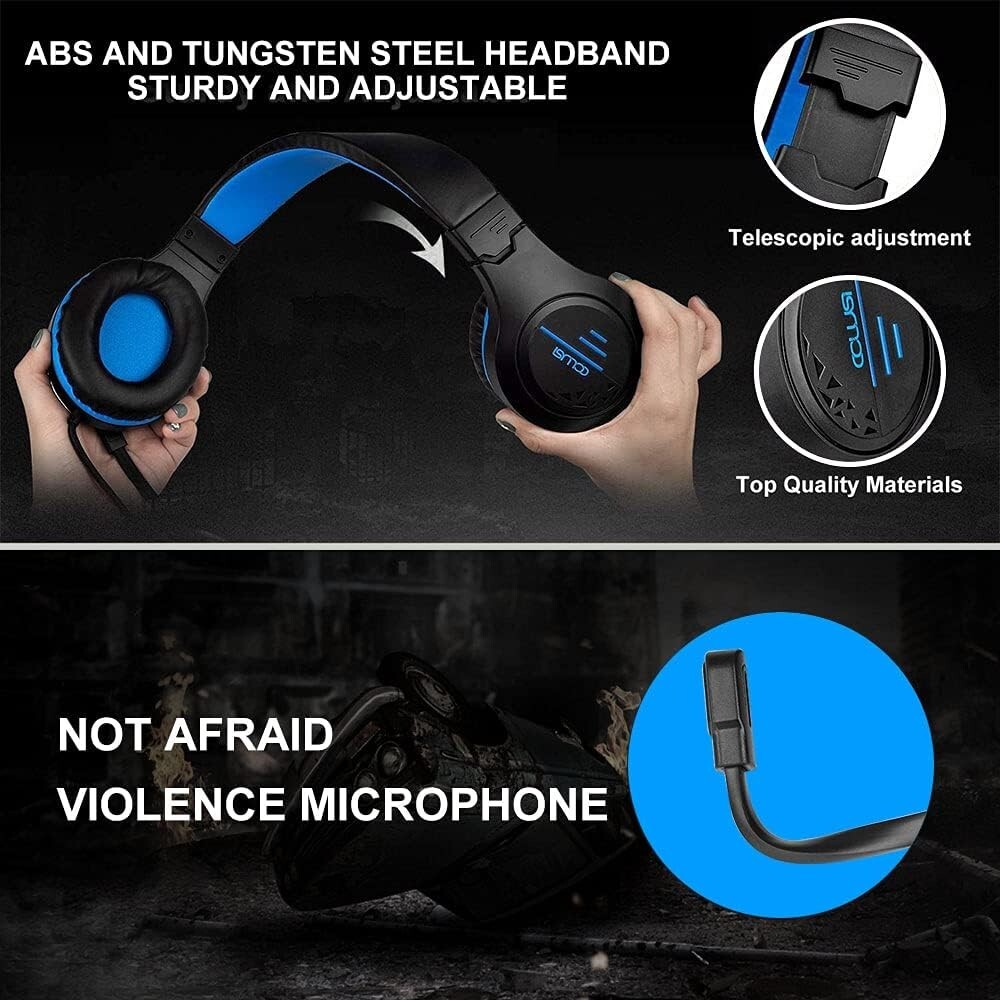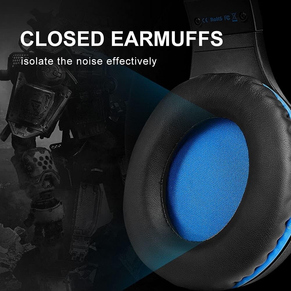 Gaming Headset with Noise Isolaing Mic,Blue LED Light,Over Ears Soft (Blue)