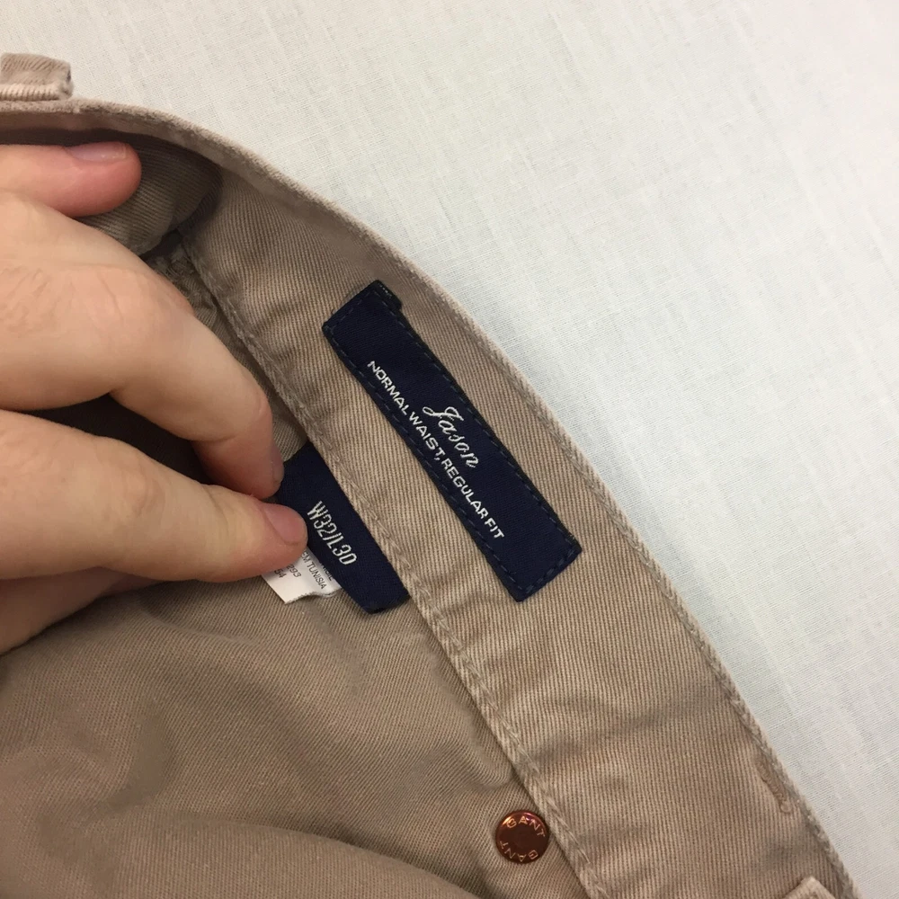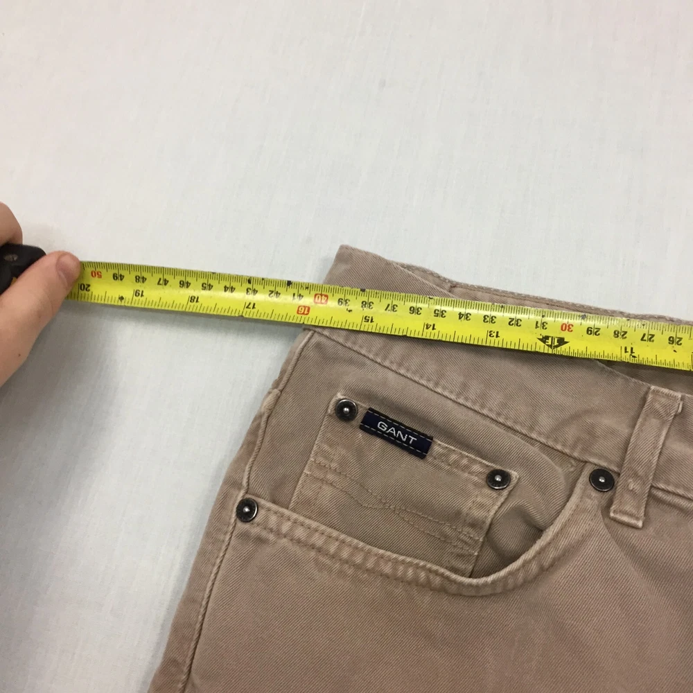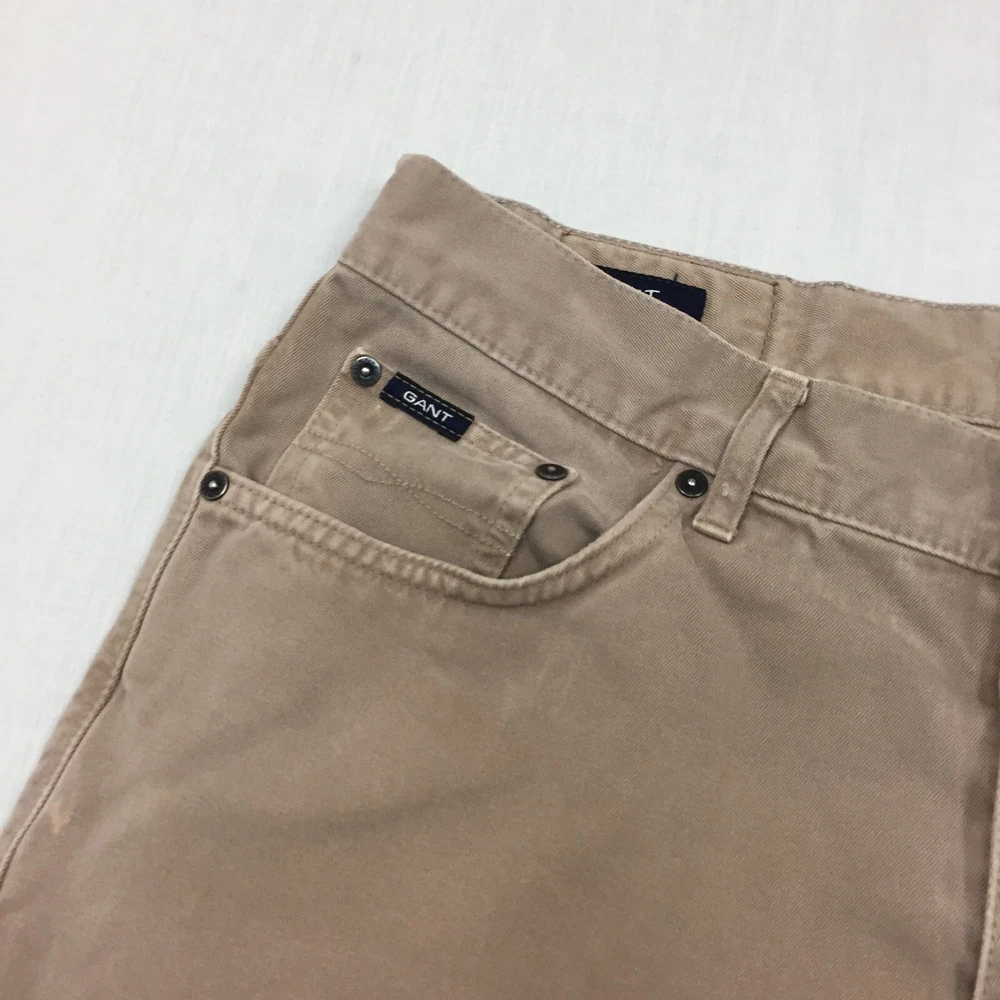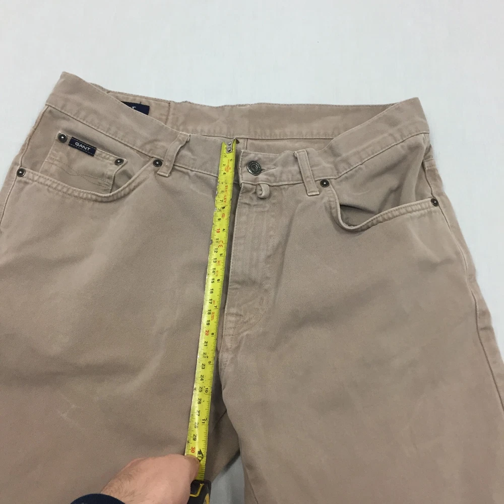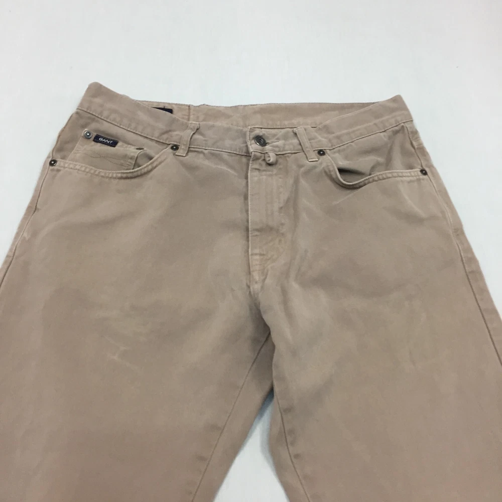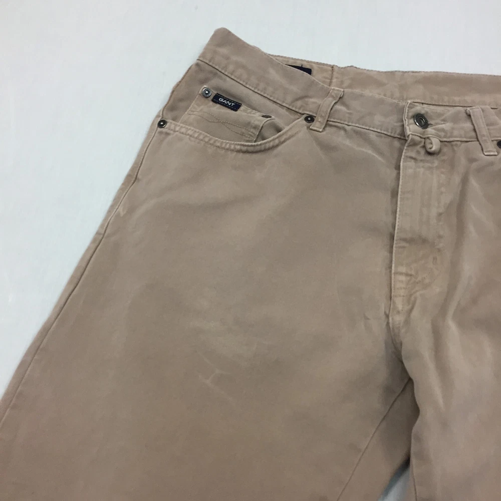 Brand: gant Pattern: No Pattern Fit: Regular Size: 32 Material: Cotton Blend Inside Leg: 29 in Season: Autumn, Spring, Summer, Winter Handmade: No Country/Region of Manufacture: Unknown Rise: Mid (10-12 in) Seller Notes: “Good used condition, Small mark on the front. check below for full description & photos.” Leg Style: Straight Size Type: Regular Waist Size: 32 in Closure: Button Fabric Type: Canvas Occasion: Business, Casual, Travel Colour: Beige Vintage: No Style: Chino Accents: Button Department: Men Type: Trousers Garment Care: Machine Washable Pocket Type: Coin Pocket Personalise: No