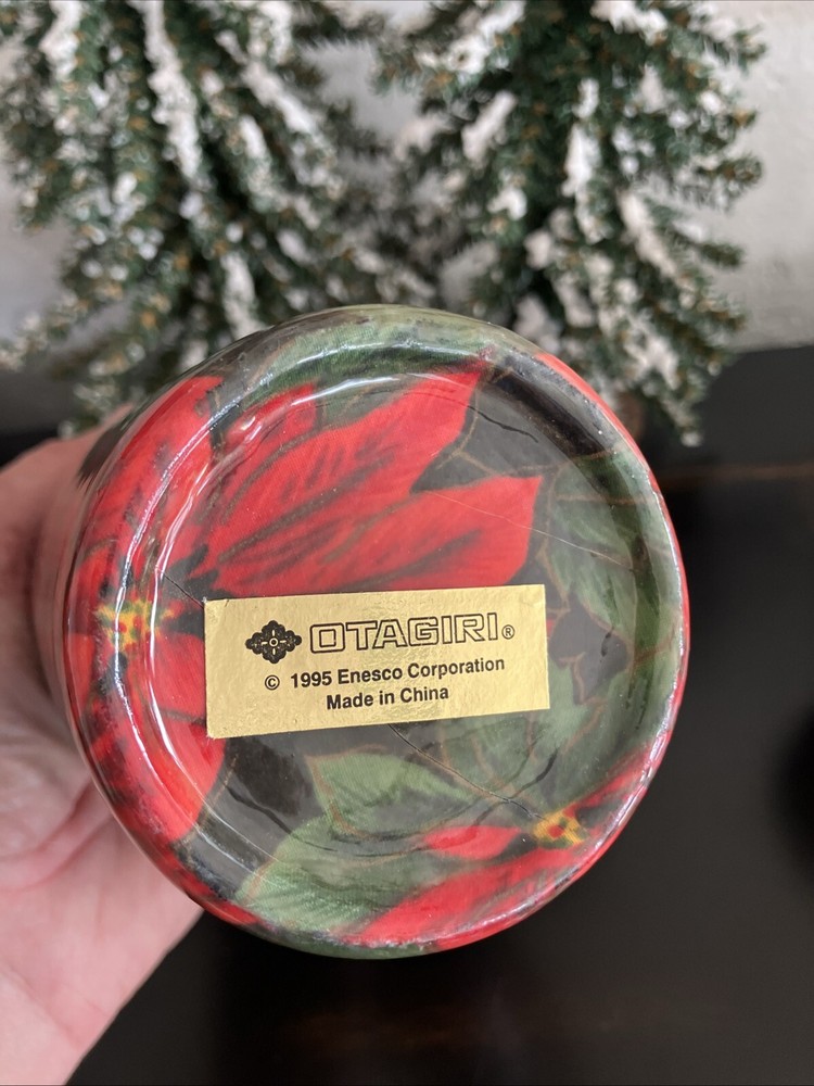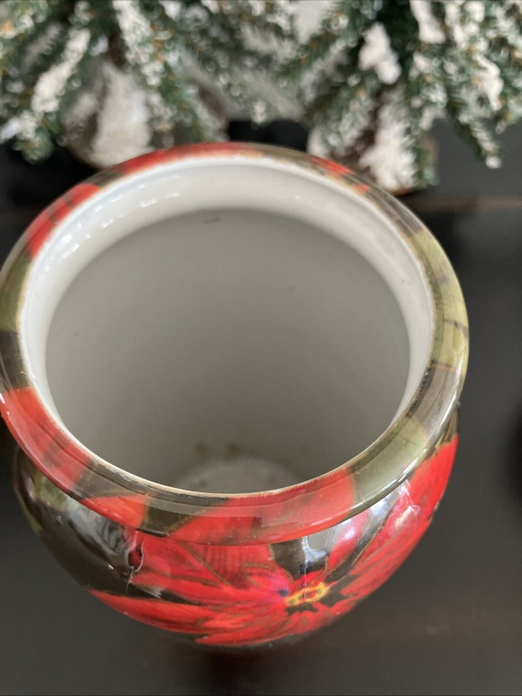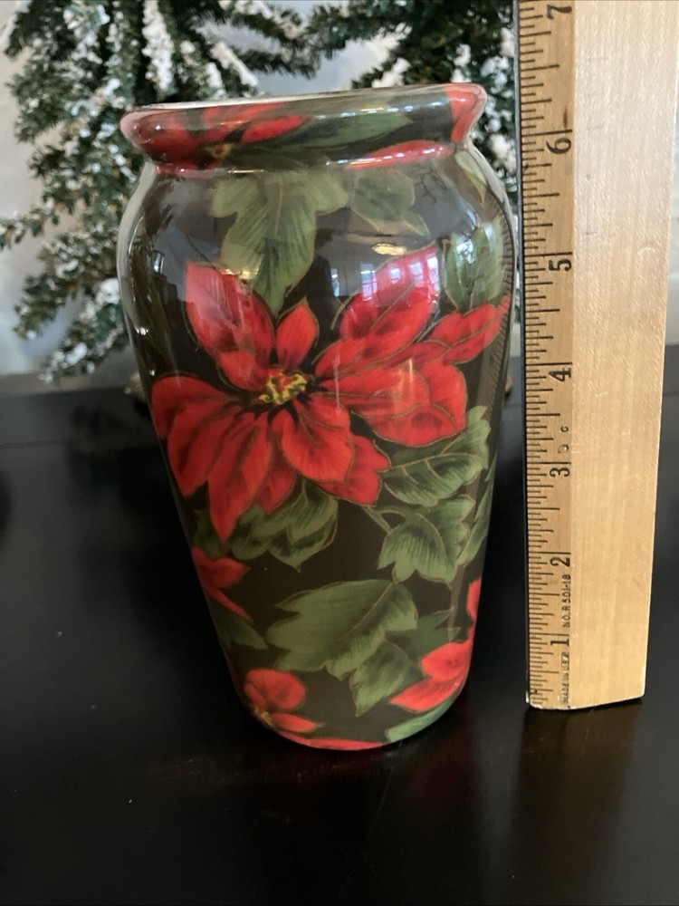 Ganz Poinsettia Vase, Beautiful Red, Green, Black