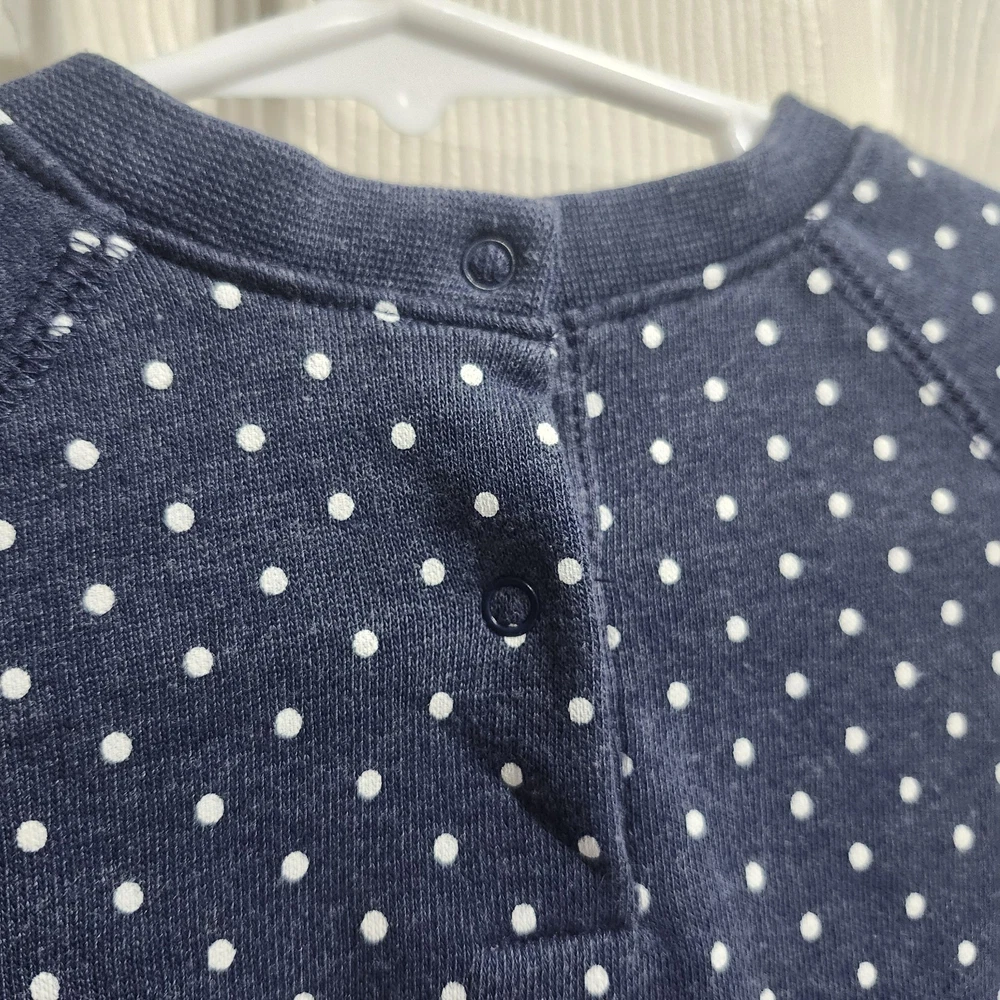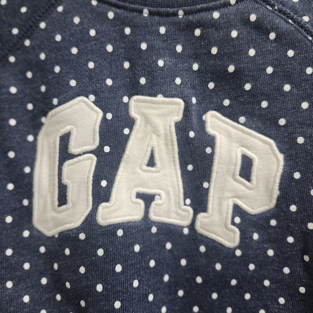 The Gap 6-12 Month Blue Polka Dot Sweatshirt with Gap Logo is a stylish and comfortable outfit for baby boys. Made from 100% cotton, this long-sleeve sweatshirt features a cute polka dot pattern in blue color. The snaps closure makes dressing easy and convenient. Perfect for casual occasions, this one-piece outfit is machine washable and suitable for all seasons. The Gap brand ensures quality and durability, making it a great addition to your little one's wardrobe.