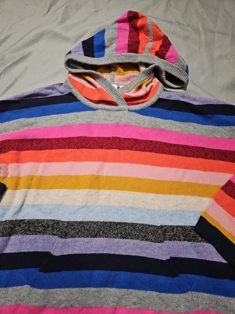 Gap Hoodie Womens XL Multicolor Jumper Rainbow Stripe Merino Wool Blend Oversize Pre-owned In excellent condition Please measure your garments at home to ensure sizing matches what you need. Measurements in photographs above This item was thoroughly checked for condition of this item. Each flaw that we find will be shown in the photos and described in the condition description and here as well. For any reason if we miss something on an item we offer 30 day moneyback guarantee refund. SHIPPING RULES: We Ship Monday through Friday If purchased before 1pm possibly will be shipped same day