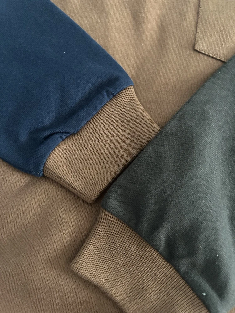 This auction is for a long sleeve top. It is Brown, with one Blue and one Olive colored sleeve. It is made of heavy weight jersey material and is loose fit. All my items come to you from a smoke free and pet free home. If you have any questions please feel free to email me.