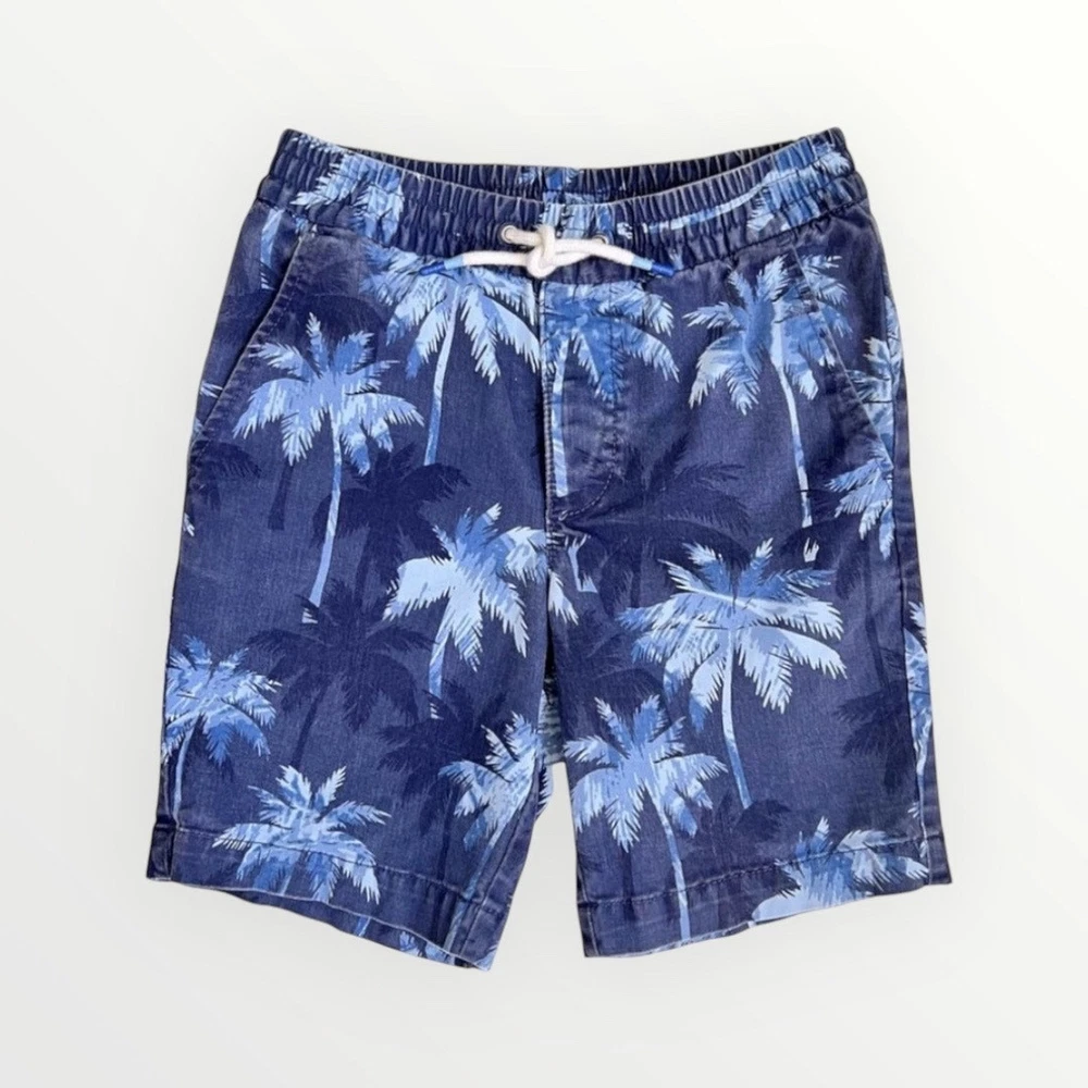 Gap Kids Boys Easy Pull-On Shorts with Washwell. Blue with palm tree print. Elastic waistband with drawstring. Side slant pockets. Back patch pockets. Size M/8 Very good used condition. Minor signs of wear. Waist 11" Inseam 7" Smoke free home. Pet friendly.