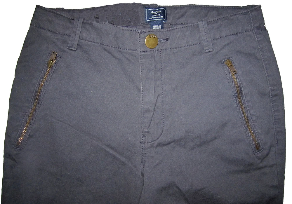 Gap Kids Skinny Fit Pants color: "spring night" gray button and zipper fly front zipper pockets, back welt pockets concealed adjustable waist sits just below the waist slim through the hip and thigh skinny leg opening 97% cotton / 3% spandex Sizes: 6, 7 New With Tag Original Retail Price: $34.99