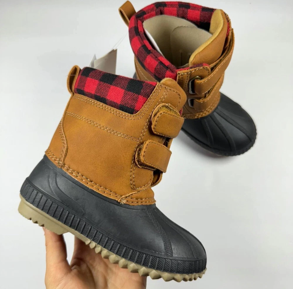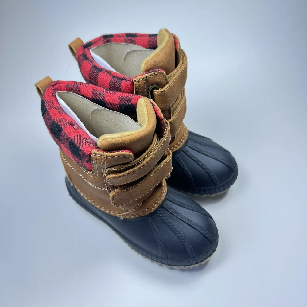 Season: Fall, Winter Features: Waterproof Country/Region of Manufacture: China Performance/Activity: Snow Color: Brown Upper Material: Faux Leather Outsole Material: Rubber Brand: Gap Character: Boots Shoe Shaft Style: Mid-Calf Theme: Duck Style: Snow Boot Model: Thinsulate Department: Unisex Kids Heel Height: Flat (Under 1 in) Vintage: No Type: Boot Occasion: Casual Closure: Hook & Loop Pattern: Plaid