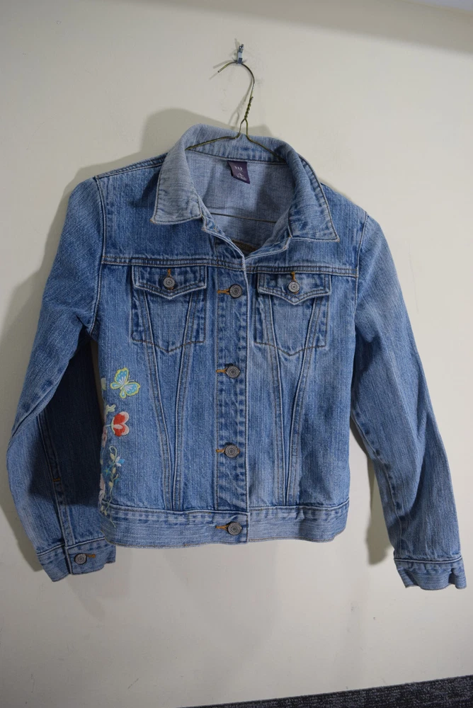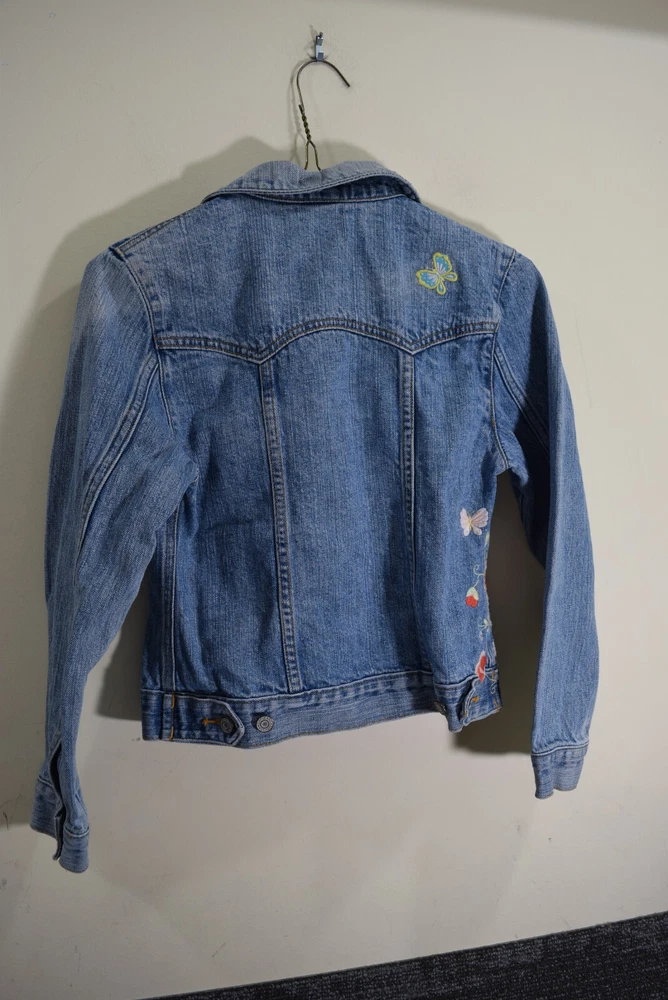 Gap Kids GIRLS L 10 Embroidered Flowers Butterflies Trucker Blue Jean Jacket Condition is used To keep shipping costs low - Ships in poly mailer bag Review my feedback and buy with confidence - no question 30 day RETURNS are ACCEPTED but please verify measurements above will work for you to save us both the efforts of returning and relisting - thanks! Shipping carrier / class may differ from listed above but shipping cost will not change. Used clothing is washed per eBay standards