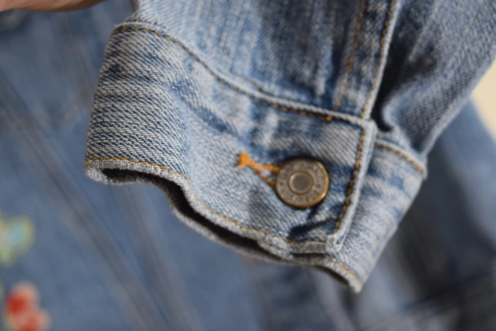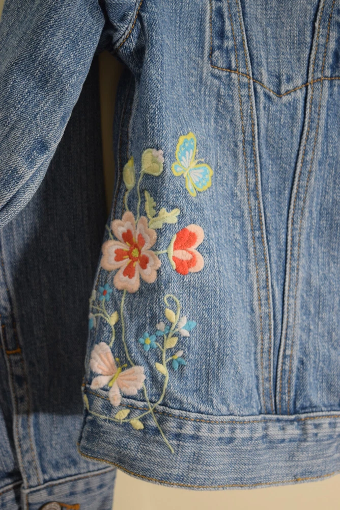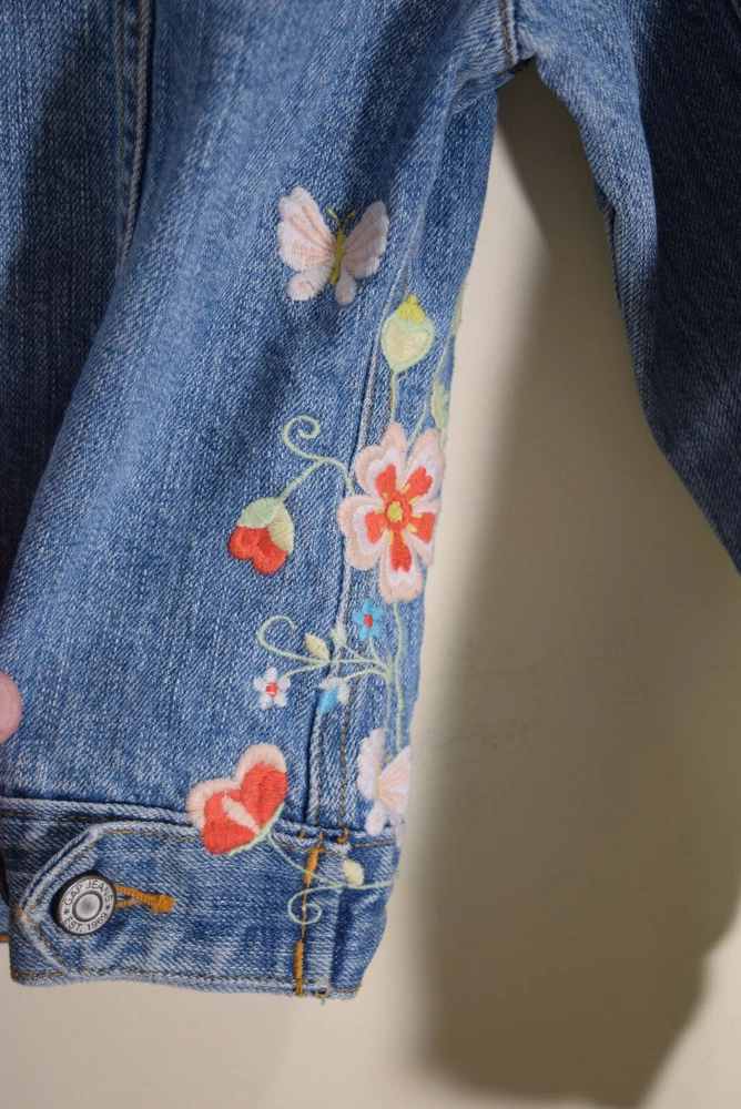 Type: Jacket Season: Spring, Summer, Fall Sleeve Length: Long Sleeve Fabric Type: Denim Occasion: Everyday Accents: Embroidered Color: Blue Brand: Gap Size: L Theme: Flower Modified Item: No Outer Shell Material: Denim Department: Unisex Kids Style: Jean Jacket