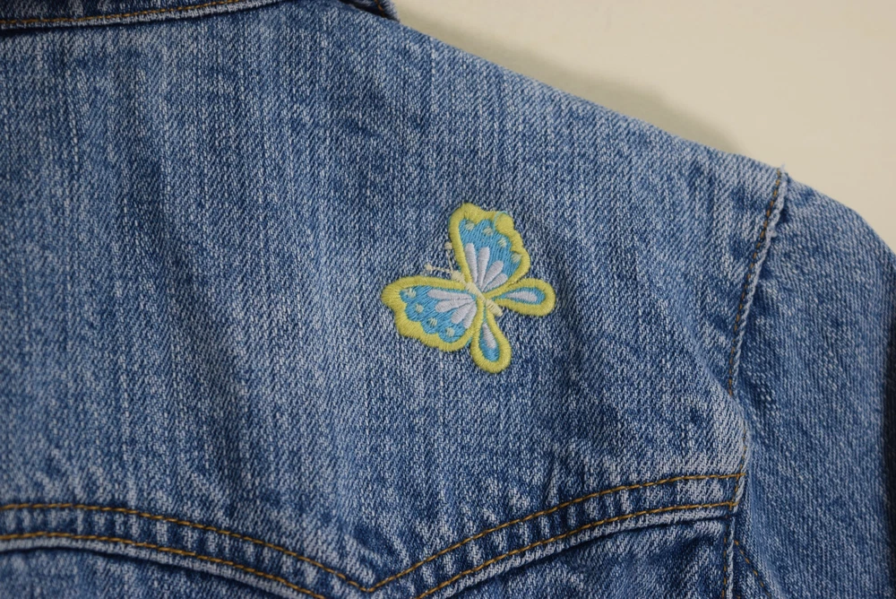 Gap Kids GIRLS L 10 Embroidered Flowers Butterflies Trucker Blue Jean Jacket