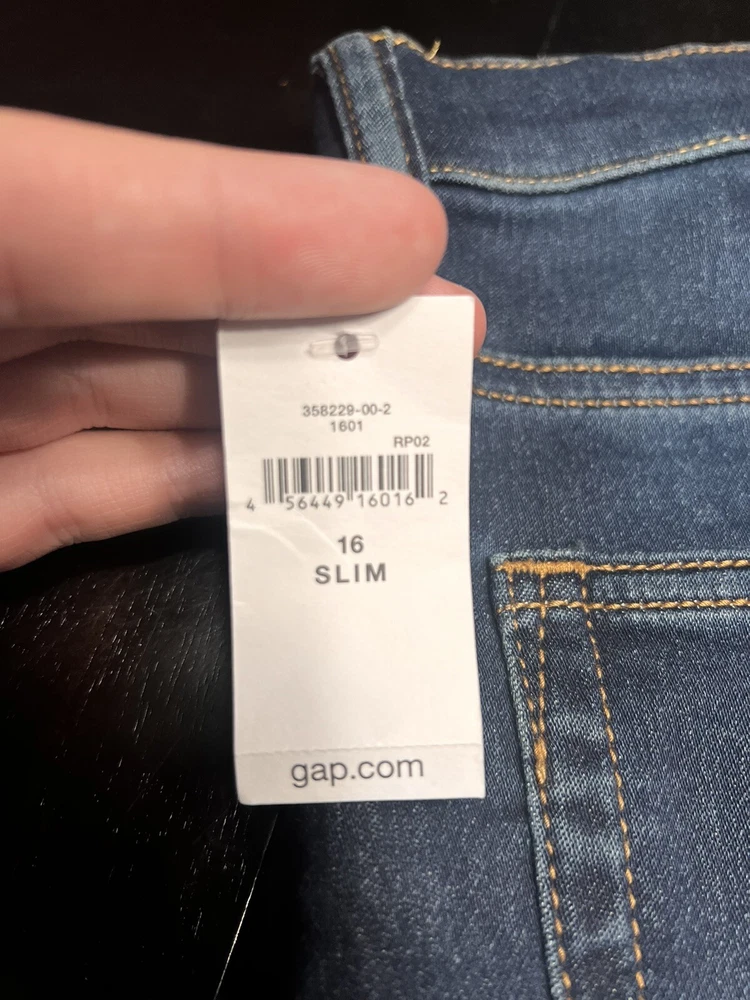 Gap Kids Jeans Boy’s Stretch Slim Leg Regular Fantastiflex Denim Size 16 New with Tags.