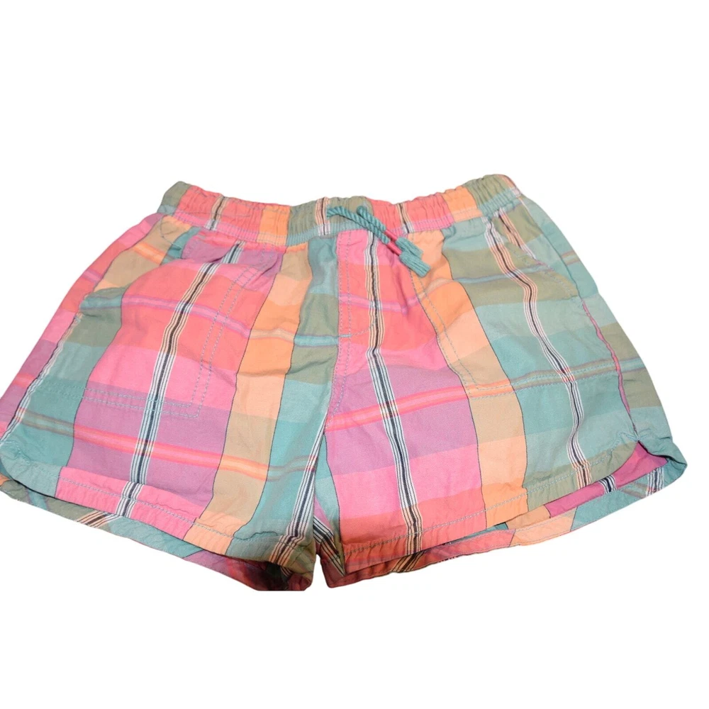 Brand: Gap Kids Size: Girl's XL 12 Style: Elastic Waist Pull On Shorts, Plaid Print in Turquoise, Pink, Orange Condition: LN Material: 100% Cotton Measurements: --Waist: 11 Inches across waist unstretched --Inseam: 4 Inches --Rise: 8 Inches All measurements taken with garment lying flat and unstretched.