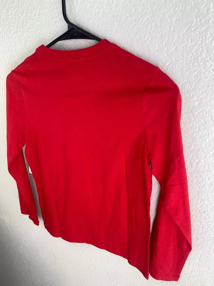 Closure: Pullover Type: T-Shirt Fit: Athletic Department: Girls Character Family: 101 Dalmatians Accents: Logo Neckline: Crew Neck Size: M Features: All Seasons Brand: Gap Theme: Movie Fabric Wash: Medium Pattern: Solid Vintage: No Material: Cotton Blend Color: Red Character: Buddy Elf Performance/Activity: Beach, Bodybuilding Fabric Type: Blended Fabric Season: Winter Sleeve Length: Long Sleeve Style: Basic