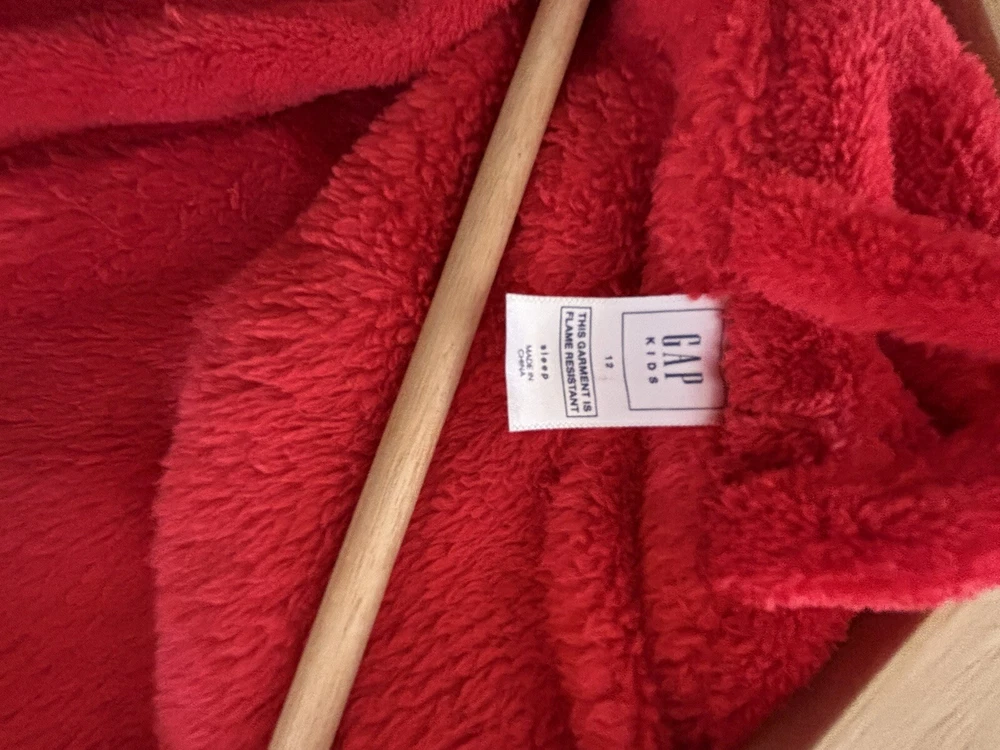 Get your kids ready for any season with this cozy and stylish Gap Kids Soft Plush Fleece Red Robe Hooded in size 12. Perfect for Christmas, this robe features a solid pattern with long sleeves and a tie closure. The fleece fabric type ensures that your child stays warm and comfortable, while the hooded feature adds an extra layer of protection from the elements. Made of 100% polyester, this robe is both durable and soft. The unisex design makes it suitable for all kids, and the red color adds a pop of fun to any outfit. This robe is perfect for winter, summer, fall, and spring. Order now and give your child the gift of cozy and stylish sleepwear.