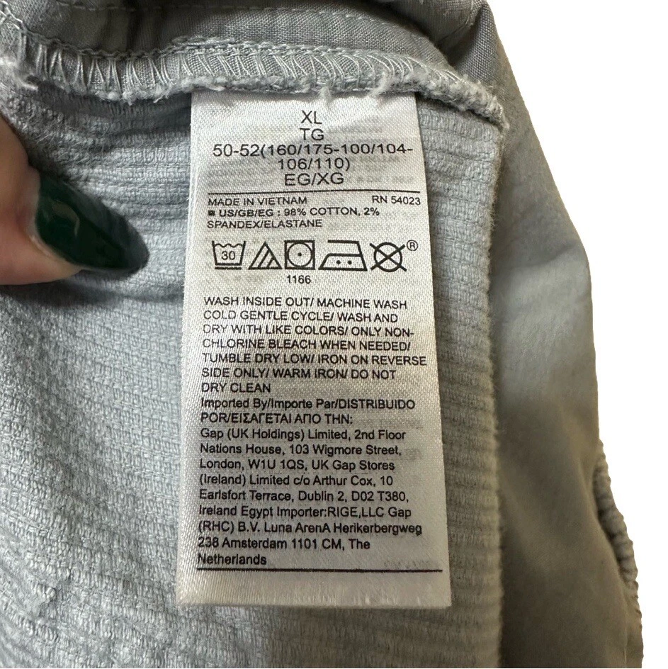 Gap Pants Sz XL Women Gray Stretch Corduroy Leggings Ribbed Solid Very good pre-owned condition, no flaws. Approximate flat lay measurements: Length-39 Waist-18” Rise-14” Inseam-27” Elevate your style with these Gray Stretch Corduroy Leggings from Gap. The ribbed solid pattern and skinny leg style perfectly complement the jegging style. The zip closure adds a touch of sophistication and the pants are perfect for travel, casual outings or workwear. The pants are made of spandex and cotton material, making them stretchy, comfortable and perfect for all seasons. These Gap pants come in size XL with a waist size of 36 inches and an inseam of 27 inches. The pants are a regular fit and are designed for women. The fabric type is corduroy and the accents include a zipper. These pants are ideal for those who love hipster themes and vintage designs.