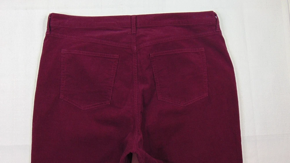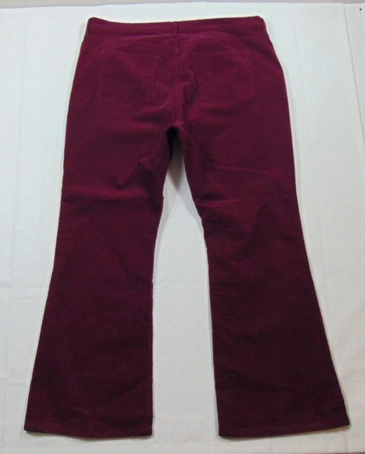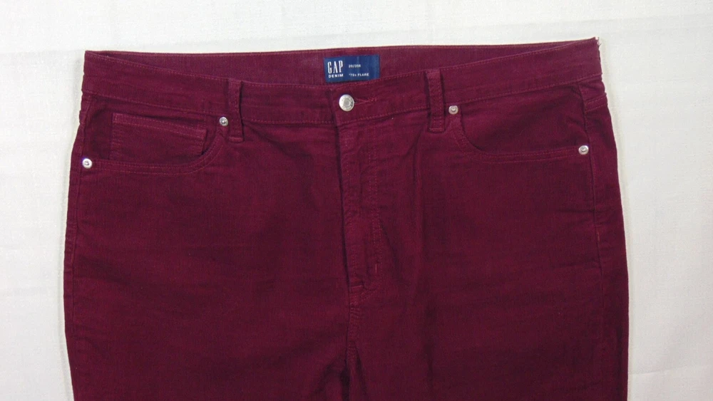 Inseam: 30 in Color: Purple Season: Fall, Spring, Summer, Winter Waist Size: 40 in Leg Style: Flared Size Type: Plus Style: n/a Department: Women Occasion: Casual Pattern: Solid Rise: High (Greater than 10.5 in) Features: Pockets, Stretch Personalize: No Vintage: No Type: Pants Material: Cotton Blend Brand: Gap Fabric Type: Corduroy Seller Notes: “excellent.” Size: 20 Closure: Button