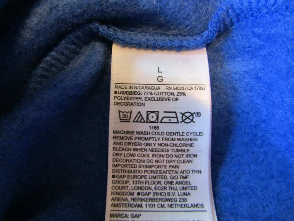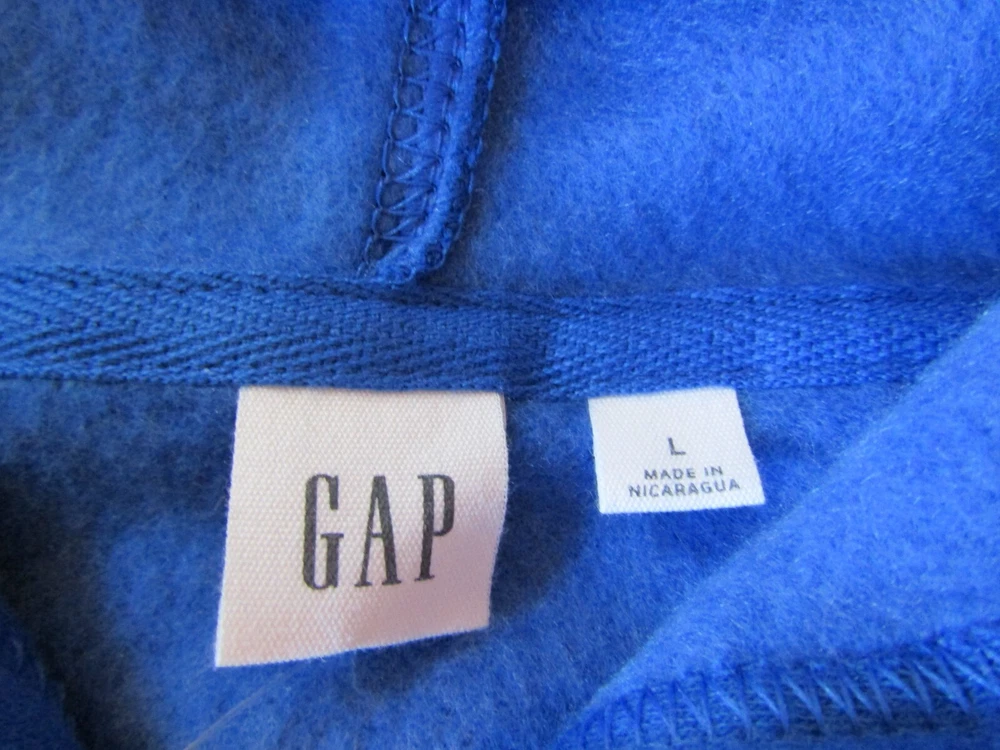gtin13: 500126184566 Country/Region of Manufacture: Nicaragua Size: L Vintage: No Style: Full Zip Closure: Zip Material: Cotton, Cotton Blend, Polyester Department: Women Type: Hoodie Sleeve Length: Long Sleeve Color: Blue Accents: Logo Fabric Type: Jersey Pattern: Solid Size Type: Regular Fit: Regular Occasion: Activewear UPC: 500126184566 Brand: Gap Garment Care: Machine Washable Personalize: No