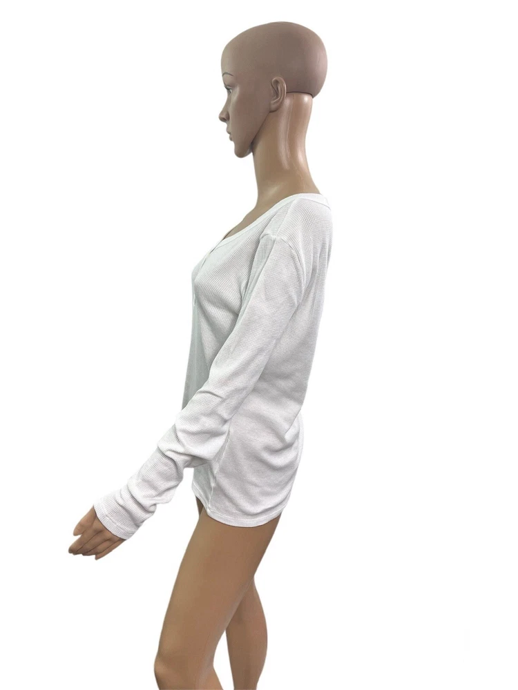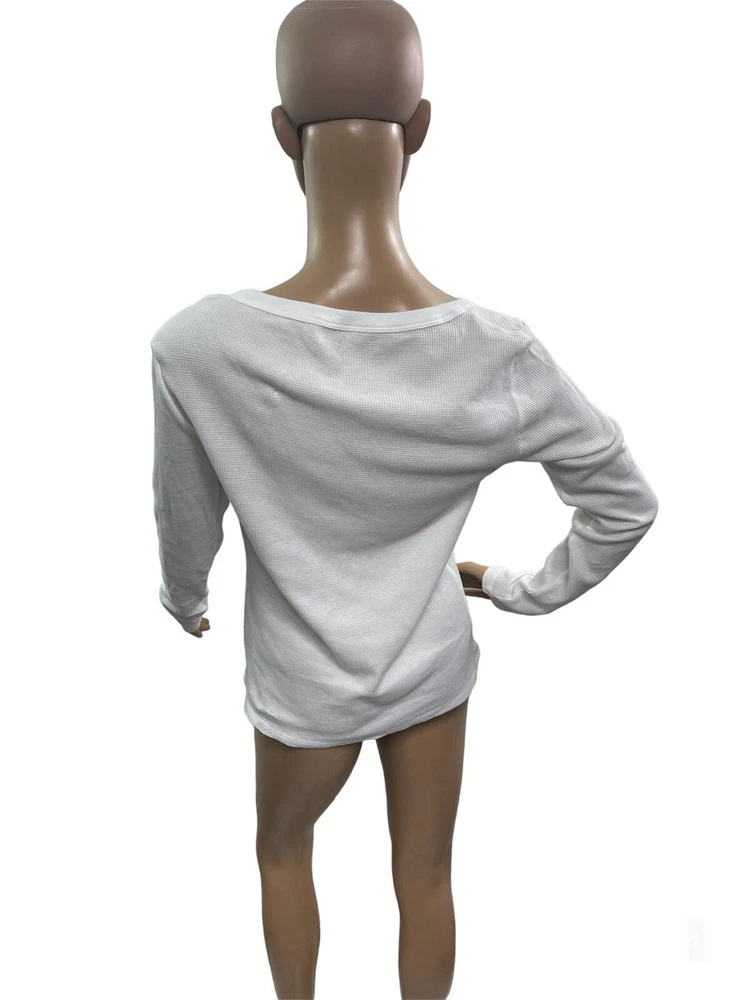 Gap Women’s Size Small Long Sleeve V Neck Solid White Waffle Knit Fitted Tee Armpit to armpit 18” Total Length 23” Measurements taken laying w Please look at all the pictures as they are part of my description Smoke free pet free home