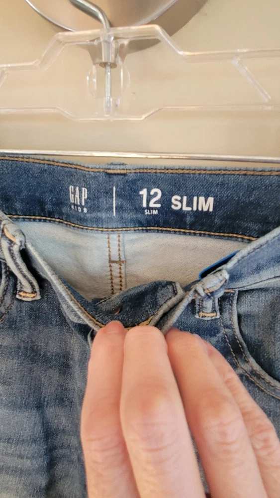 Type: Jeans Fabric Wash: Medium Closure: Button, Zip, inside pull button elastics Features: Slimming Size: 12 Department: Boys Style: slim Fit: Slim Color: Blue Brand: Gap