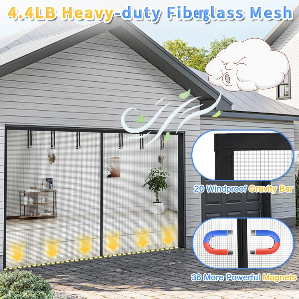 Garage Door Screen for 2 Car 16x7FT, Magnetic Closure Heavy Duty Garage Scree...