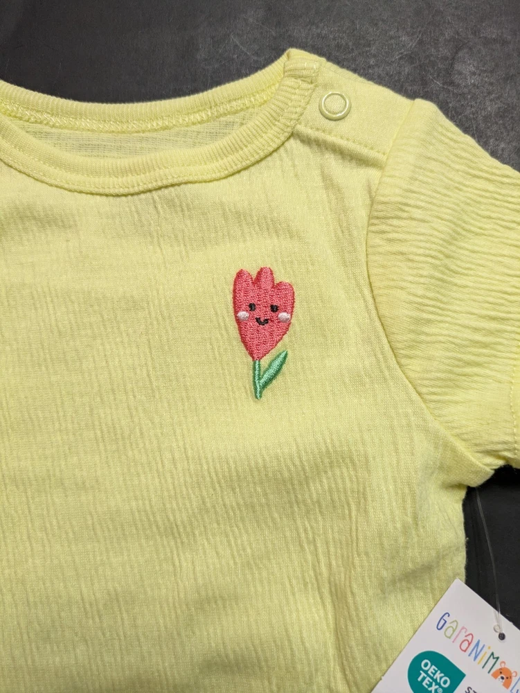 Get your little one ready for the sunny weather with this adorable 6-piece Garanimals bundle! These pieces are brand new with tags (NWT) and feature soft, high-quality fabrics that are gentle on baby's skin. What’s Included: 1x Pink Solid Tee: Classic soft jersey. 1x Pink Striped "Enjoy Today" Tee: Features cheerful smiling flower graphics. 1x Yellow Chenille Flower Tee: Beautiful flutter sleeves and a soft, textured 3D flower. 1x Yellow Crinkle Bodysuit: Short-sleeved with an embroidered tulip and shoulder snaps for easy dressing. 1x Yellow Ribbed Bike Shorts: Finished with a cute lettuce-edge hem. 1x Pink Ribbed Bike Shorts: Finished with a cute lettuce-edge hem. Manufacturing Details: This global collection includes quality craftsmanship from several regions: Ethiopia: 2 items El Salvador: 2 items India: 1 item Bangladesh: 1 item 🔥 SPECIAL PROMOTION: > Stock up and save! If you purchase 2 or more Garanimals bundles from my shop, you will receive FREE SHIPPING on your entire order. Shipping & Returns Items are shipped from a smoke-free/pet-free environment. Fast shipping! Free shipping applied automatically at checkout when purchasing 2+ bundles! If the discount isn't automatic, I will issue a refund on shipping.
