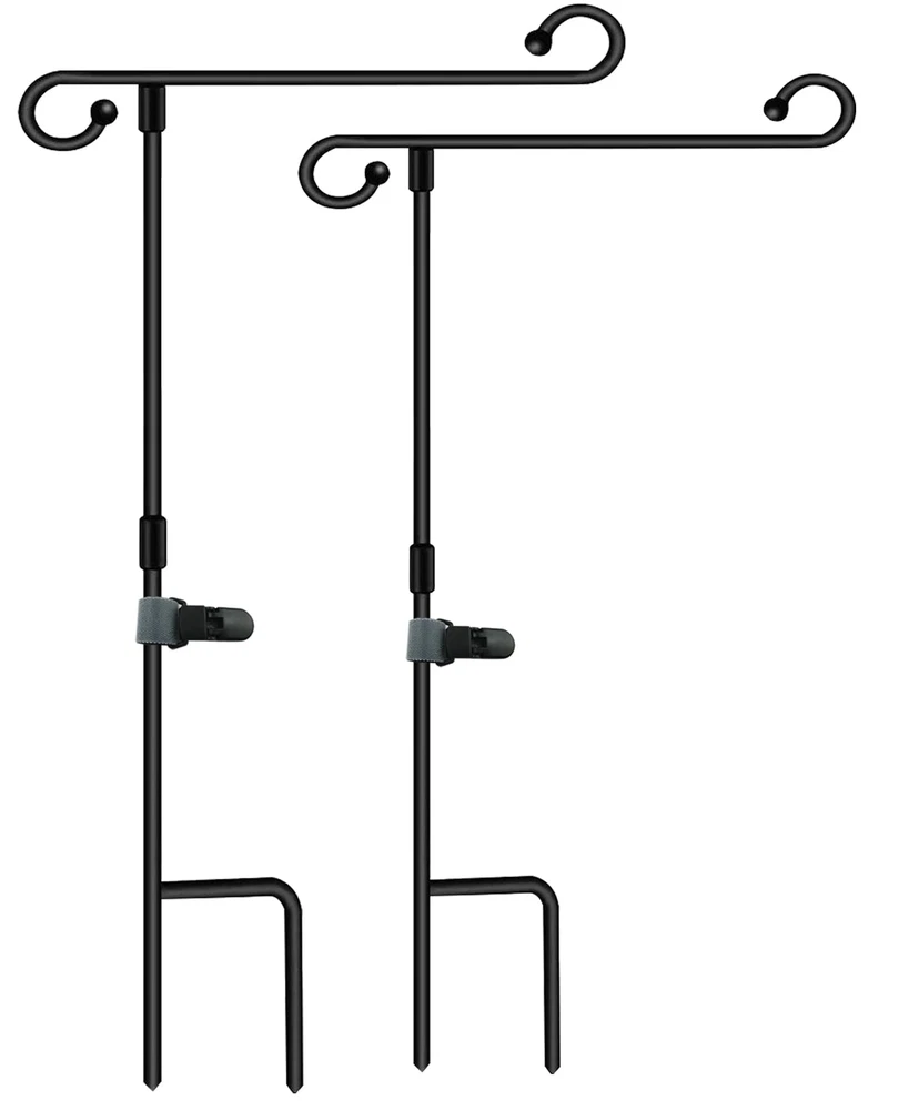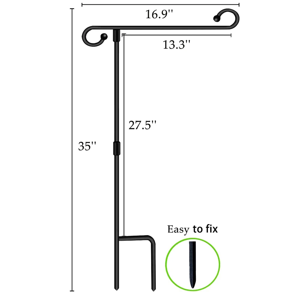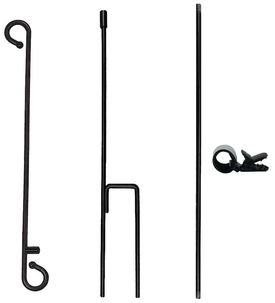 The advantages of our Garden Flag Holder: 1- Flagpole accessories are complete, no need to buy other accessories. Just hang up your beloved flags and float in your garden. 2- Resist the hurricane's Adjustable flag Spring Stoppers and tiger Anti Wind clip to keep your flag floating in your garden forever. 3- Made of high quality metal, sturdy and durable. Removable 3-piece flagpole for easy storage. 4- Use all garden flags with a width of 14.5 inches or less, such as American flags, valentine's day garden flag,St. Patricks garden flag,Spring garden flag,Easter garden flag,summer garden flags,mother's day garden flag,Graduation garden flag,memorial day garden flags,father's day garden flag,4th of July garden flag,Independence Day garden flag,flag day garden flag,veterans day flag,Fall garden flag,Birthday garden flag,Labour day garden flag,Halloween garden flag,Thanksgiving garden flag, Christmas garden flag,Winter garden flag,New years flags e c t . Packing include: 2*garden flag Stand 2* Anti-Wind Clip Quickly join the shopping cart and let our products accompany you through every happy holiday! Complete garden flag pole set includes 2 flag poles, 2 flag Spring Stoppers and 2 Anti Wind Clips to hang garden flags outside Windproof accessories with adjustable flag Spring Stoppers and Anti Wind clips resist wind to keep flags in place Rust-proof metal flag poles with removable 3-piece design for easy storage Suitable for garden flags up to 14.5 in wide including holiday, seasonal & decorative outdoor banners