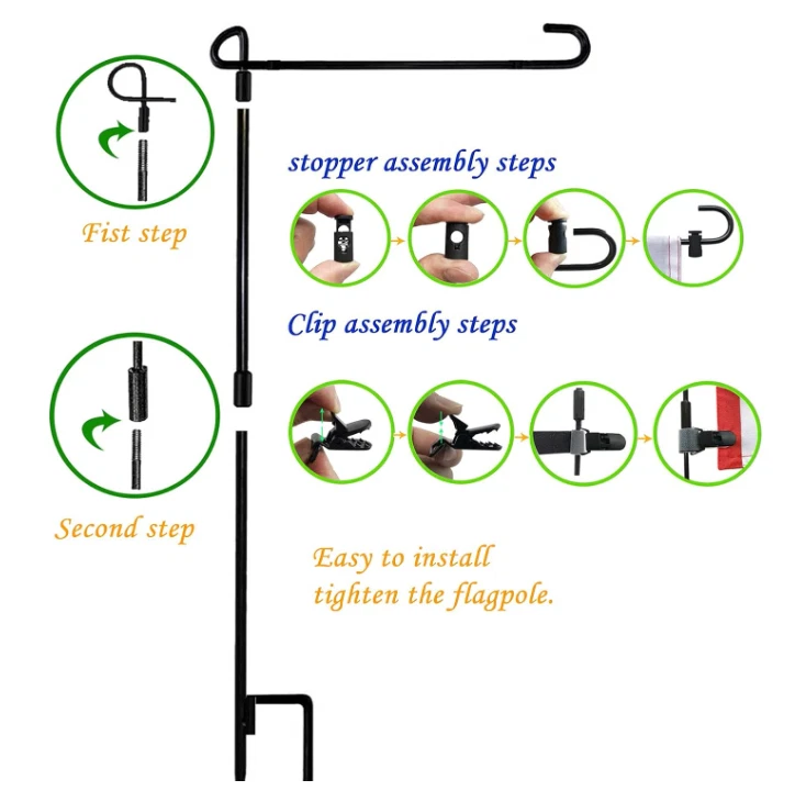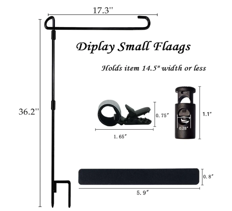 Free eBay listing template designed by dewiso.com Garden Flag Stand-Holder-Pole with Garden Flag Stopper and Anti-Wind Clip for… Perfect garden flag pole set. There are flag poles for outside house, flag Spring Stoppers and tiger Anti Wind Clip. Buy and hang your favorite flags. High quality rust-proof banner stand. Made of high quality metal, 3-piece removable flagpole for easy storage. Suitable for banner stand. American flags,valentine's day garden flag,St. Patricks garden flag,Spring garden flag,Easter garden flag,summer garden flags,mother's day garden flag,memorial day garden flags,4th of July garden flag,Independence Day garden flag,flag day garden flag,veterans day flag,Fall garden flag,Birthday garden flag,Halloween garden flag,Thanksgiving garden flag, Christmas garden flag,Winter garden flag,New years flags,available for less than or equal to 14 inches wide. Well-designed windproof accessories. Adjustable flag Spring Stoppers and tiger Anti Wind clip resist hurricanes, keeping your flag from drifting to someone else's home. Enjoy a worry-free shopping experience.Join your shopping cart to celebrate your holiday. Product Description The advantages of our Garden Flag Holder: 1- Flagpole accessories are complete, no need to buy other accessories. Just hang up your beloved flags and float in your garden. 2- Resist the hurricane's Adjustable flag Spring Stoppers and tiger Anti Wind clip to keep your flag floating in your garden forever. 3- Made of high quality metal, sturdy and durable. Removable 3-piece flagpole for easy storage. 4- Use all garden flags with a width of 14.5 inches or less, such as American flags, valentine's day garden flag,St. Patricks garden flag,Spring garden flag,Easter garden flag,summer garden flags,mother's day garden flag,Graduation garden flag,memorial day garden flags,father's day garden flag,4th of July garden flag,Independence Day garden flag,flag day garden flag,veterans day flag,Fall garden flag,Birthday garden flag,Labour day garden flag,Halloween garden flag,Thanksgiving garden flag, Christmas garden flag,Winter garden flag,New years flags e c t . Packing include: 1*garden flag Stand 1* Anti-Wind Clip 2*Garden flag Stoppers