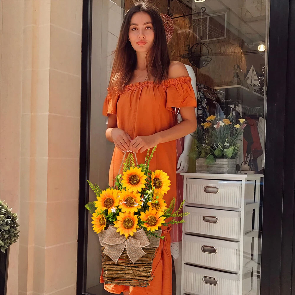 Garden Hanging Wreath Balcony Home Decoration Faux Sunflower Kitchen Decor US