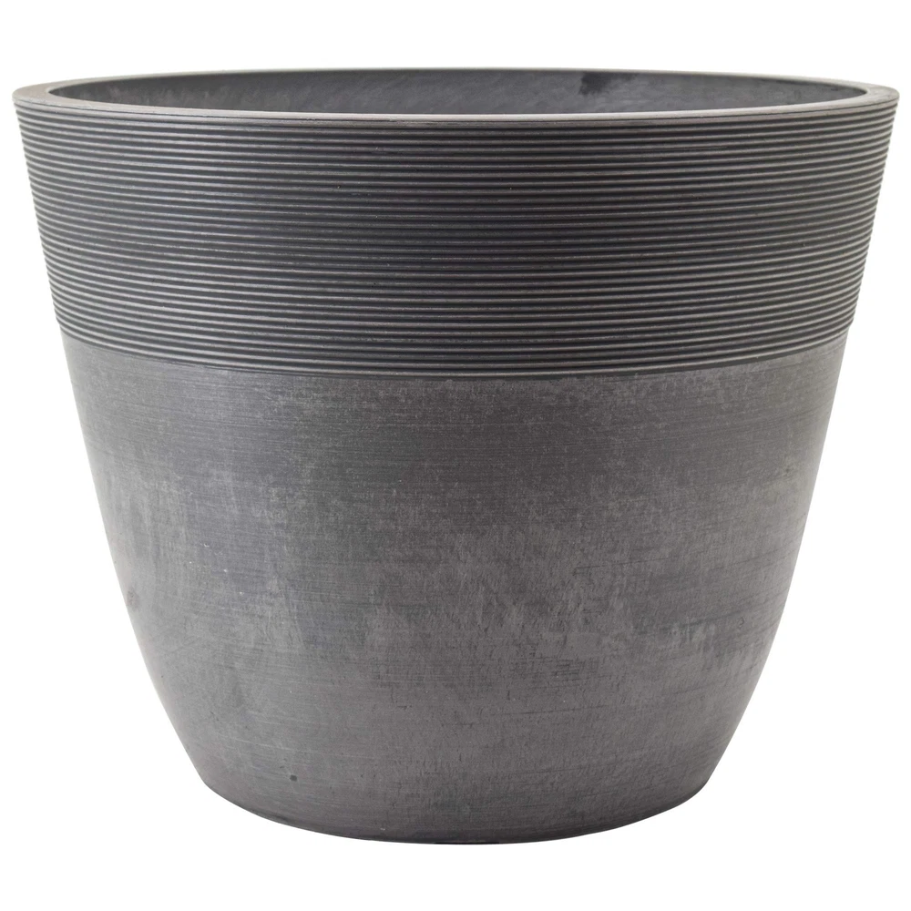 Part of our award-winning PSW Pot Collection, the Etched Pot from Garden Products is made from a mix of recycled plastic, stone , and wood dust. This smart-looking container is ideal for planting combination gardens that provide adequate space for descending roots. The height works well for those plants that will drape and grow over the pot’s edge. Both indoor and outdoor use are popular with this deep pot. For outside use where drainage is likely to be necessary, the bottom of the pot indicates the ideal area for optional drilling. The winning combination of recycled ingredients in the PSW line makes this an attractive, eco-friendly product that is also weather resistant and easy to clean. Available in colors and three sizes, the container features elegant etched ridges around the top portion of the pot. The sturdiness of this etched pot is admirable, and its significant feel and look make it a thoughtful gift for those who enjoy plants and planting. Because it coordinates with other PSW co LIGHTWEIGHT & DURABLE: Answering a gardener’s wish, this PSW item looks heavy but is lightweight and sturdy, which means it’s easy to move and reposition on a patio or in a garden. RECYCLED MATERIALS: A blend of recycled plastic, stone and wood dust is inventively used to create this substantial-feeling etched pot. PSW products are both attractive and eco-friendly. ORIGINAL: The unique appearance of each PSW product is -of-a-kind due to the blending of recycled materials. The slight variations infer an artisan’s touch, making these moderately deep planters appealing and functional. WEATHER RESISTANT: Through snow, sleet, rain or heat – this item can withstand extremes. UV rays won’t fade this item so count on it to be long-lasting. PSW etched pots are for use indoors and outside. DRAINAGE OPTIONAL: Optimal locations for drilling are indicated on the bottom of the pot, enabling this planter to be an ideal choice for enjoyment both indoor and outdoor. VARIETY: Having choices makes a difference when creating a certain look in your garden or sunroom. PSW products are available in a variety of sizes and colors to complement your existing gardenscape or to create a new porch or patio look.