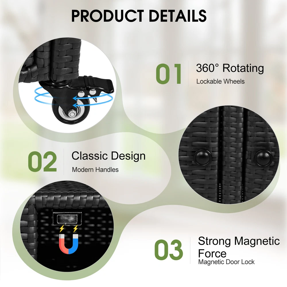 listing template VISIT OUR STORE SIGH UP FOR EMAIL Garden Rattan Wicker Bar Counter Table with Glass Top & Storage Cabinet, Patio Introductions: The Outdoor Bar Cart Table combines functionality, style, and convenience, making it an essential addition to any outdoor living space. Designed with a sleek glass tabletop, open shelf, and a large enclosed cabinet, this multi-functional bar cart can serve as a prep station or display cabinet. It offers easy mobility with lockable swivel wheels and sturdy handles, ensuring smooth transport between your garden, patio, poolside, or balcony. Crafted from durable all-weather wicker and metal, this versatile cart is built to last and withstand the elements. Perfect for entertaining or storage, it brings elegance and practicality to your outdoor gatherings. Features: 1. Multi-Functional Storage: This bar cart features a glass tabletop, an open middle shelf, and a large enclosed storage cabinet. Whether you need a prep table for drinks, a serving station for appetizers, or a storage solution for outdoor essentials, this cart has you covered. 2. Durable, Weather-Resistant Construction: This outdoor bar cart is made with high-quality all-weather wicker and a robust metal frame. The wicker is carefully crafted to endure the outdoors, resisting fading, cracking, or wear over time. The glass tabletop is not only durable and resistant to stains but is also incredibly easy to wipe clean. 3. Smooth Mobility and Stability: Equipped with four swivel wheels for effortless maneuvering and all four wheels are lockable for stability, this cart is easy to move and secure. Handles on each side make it convenient to transport across your patio or garden, and the handles can also be used to hang towels or kitchen accessories. 4. Perfect for Any Outdoor Occasion: Whether you're hosting a poolside cocktail party, an evening dinner on the patio, or a casual gathering in the backyard, this outdoor bar cart enhances your entertainment space. The sophisticated rattan finish and sleek design make it a stylish focal point in your garden, poolside, balcony, or porch. 5. Quick Assembly and Easy Maintenance: With clear, step-by-step instructions and all necessary hardware, assembly is a breeze. The weather-resistant materials make cleaning simple—just wipe it down to maintain its pristine look, ensuring your cart is always ready to impress your guests. Specifications: 1. Material: Iron, Wicker, Glass 2. Color: Black 3. Overall Dimensions: (51.2 x 19.7 x 35.4) in / (130 x 50 x 90) cm 4. Bottom Shelf Clearance: 3.0 in / 7.5 cm 5. Bottom Shelf Storage Space: (41.7 x 18.9 x 16.9) in / (106 x 48 x 43) cm 6. Glass Top Dimensions: (36.6 x 17.2) in / (93 x 43.6) cm 7. Upper Shelf Dimensions: (39.0 x 18.1 x 10.6) in / (99 x 46 x 27) cm 8. Weight: 50.7 lbs / 23 kg Package Includes: 1 x Outdoor Bar Cart Table 1 x Hardware Assembly Kit 1 x Instruction Manual You might like this more>> Set of 10 Plastic Folding Chairs Wedding Party Event Chair $135.99 Makeup Case Cosmetics Organizer 2 Small & 5 Large $23.65 12-Batten 4 Tier Storage Organizer Shoes Tower $24.59 2PC Patio Rattan Wicker Chair Sofa Patio Garden Furniture $99.99 High Gloss TV Unit Cabinet Stand with LED Lights $132.99 Commercial Heavy Duty Clothing Garment Rolling Collapsible $53.99 Shipping Policy 1. Ship worldwide from New Jersey by reliable shipping companies -- USPS, UPS, FEDEX, DHL, etc., and only to VERIFIED PAYPAL ADDRESS. Transport Delivery ETA. Package handling only takes 1 business day at our warehouse, so please make sure entering correct payment and shipping information before checking out. Once your payment is completed, we are not going to accept any more changes to your order. 2. International Buyers – Please Note: a. Import duties, taxes and charges are not included in the item price or shipping charges. These charges are the buyer's responsibility. b. Please check with your country's customs office to determine what these additional costs will be prior to bidding/buying. 3. Please check your shipping address carefully before checkout, it can't be changed if order completed. 4. Orders placed on weekend will be shipped within 2 days.Notification of shipment with tracking number will be sent to buyers. 5. Standard shipping: 2-7 business days Expedited Shipping: 2-3 business days One-day Shipping: 1 business day International shipping: Varies 6.Ship within 1 business day once payment completed. Notification of shipment with tracking No. will be sent to buyer. 7.We offer discounts for combine shipping. Please contact us first if you need combine shipping, and an invoice with discount will be sent to you. 8.Please allow 5 business days for delivery to US destinations on any eBay orders and 14 business days for delivery to any International destinations. We highly recommend our buyer choose priority/expess mail for international delivery which is much more stable. Return Policies 1. Refunds given only if item DOA and cannot be replaced via PAYPAL . If so, Please contact us with 5 days since you receive the item and and return to us within 30 days from the delivery date for exchange or refund. 2. If you need return, please contact our customer service representative, let us know the detailed problem and send us some pictures for confirmation. Payment Payment should be sent within 8(EIGHT) days of auction closing. Feedback If you are dissatisfied for any reason, please do not be quick to leave negative/neutral feedback. We work hard to make sure EVERY CUSTOMER 100% SATISFIED and resolve any problem for you. Work Time Work Time: Monday to Saturday About Us | Newsletter| Feedback| Contact Us Copyright © 2021 ECMonster. All rights reserved. 无标题文档 Garden Rattan Wicker Bar Counter Table with Glass Top & Storage Cabinet, Patio Introductions: The Outdoor Bar Cart Table combines functionality, style, and convenience, making it an essential addition to any outdoor living space. Designed with a sleek glass tabletop, op