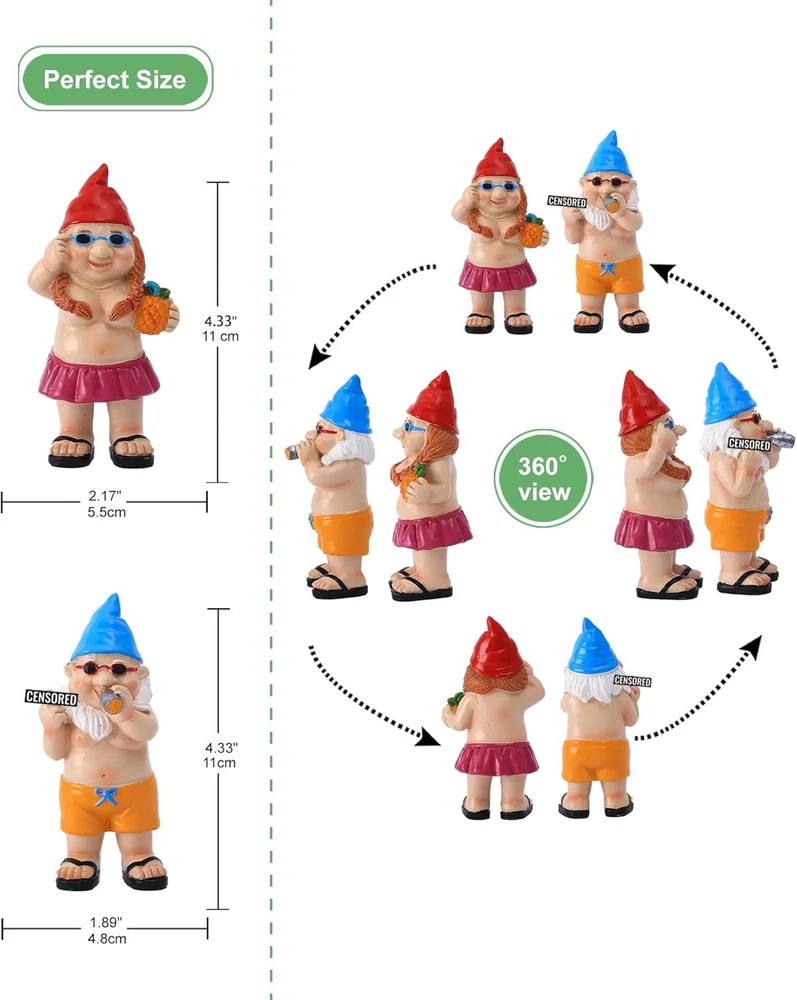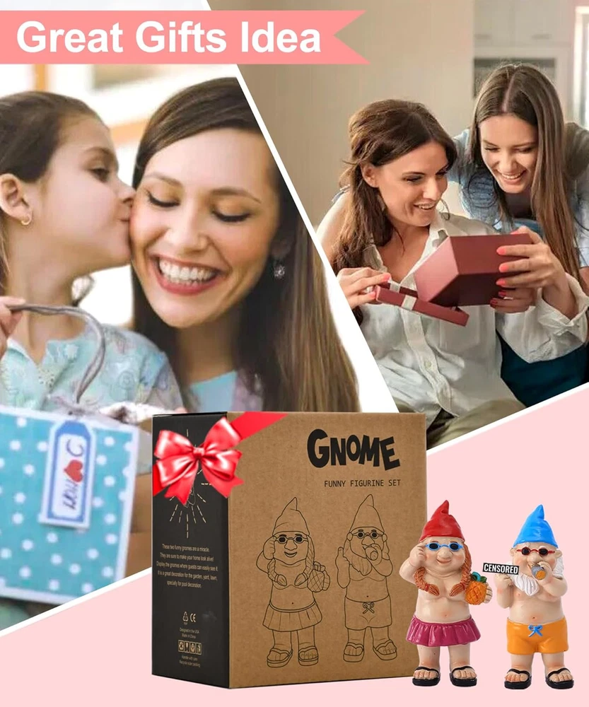 Garden Statues Funny Gnome Figurine- Outdoor Ornaments Sculptures for Lawn Patio Yard Art Decorations 2 Pack Product Details Package Dimensions: 5.79 x 4.96 x 3.54 inches Item Weight: 9.9 ounces Manufacturer: Kodylife Home Country of Origin: China Item model number: Gnome Statue 2Pack Exquisite Home Garden Decor:The pair of Gnome Statues can be used to decorate your garden;patio,etc. and can also be used to decorate your beautiful home. It can be given to lovers;husbands;wives;mothers;fathers;sons;daughters,etc Intricate Details:This New Creative the two Funny Gnome in meditative Position are sure to make your yard look alive! This exquisitely designed garden statue will bring warmth and comfort to the heart.Display the statue outdoor figurine where guests can easily see it—on your patio;garden or porch Perfect Size:The size of the male’s figurine is 1.89x1.77x4.33 inches and the size of female’s figurine is 2.17x1.57x4.33 inches wherever you put him - on the balcony;patio;in the yard;on the lawn or even on a wide window sill High Quality:Hand made by durable poly resin and stone powder construction,our Gnome is rust,weather and UV resistant to keep your statue looking new overtime