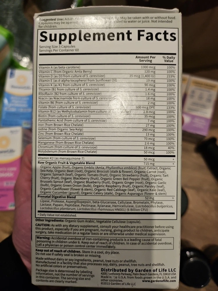 Garden of Life Code Raw Prenatal Multivitamin Capsules for Women - 180 Count.