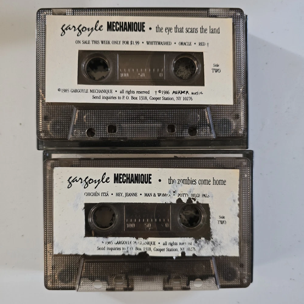 For your consideration is this original Gargoyle Mechanique 2x Cassette Tape's. Tapes come housed in a paper slipcase. Label of one tape has some damage, as shown in photos. Otherwise excellent collectors condition. From The Jim Sotet collection. Sotet was a Mercury Records Executive from the 1970s until his retirement in the mid 2000s. See photos for exact item condition. Check out our ebay store for more rare and rad collectibles! ****Buyer pays shipping which includes tracking and FULL insurance****