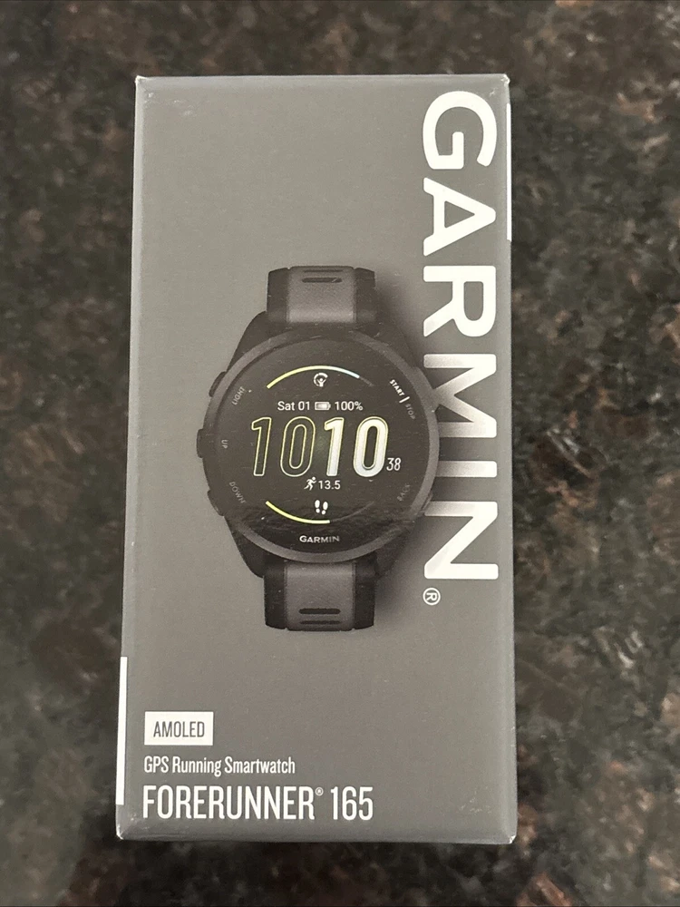 Brand New in Box Elevate your running game with the Garmin Forerunner 165 Running Smartwatch. This sleek and stylish smartwatch boasts an AMOLED training slate that provides a clear and crisp display. It comes with a charging cable, making it easy to power up your device. This smartwatch is perfect for both indoor and outdoor workouts, and has a battery life of up to 11 days. It features a variety of sensors, including GPS, to help track your progress. The watch also has a heart rate monitor, stress tracker, and recovery time calculator to ensure you can train at your best. With music, alarm, calendar/date, training effect, and HRV status, this smartwatch is the perfect companion for your fitness journey.