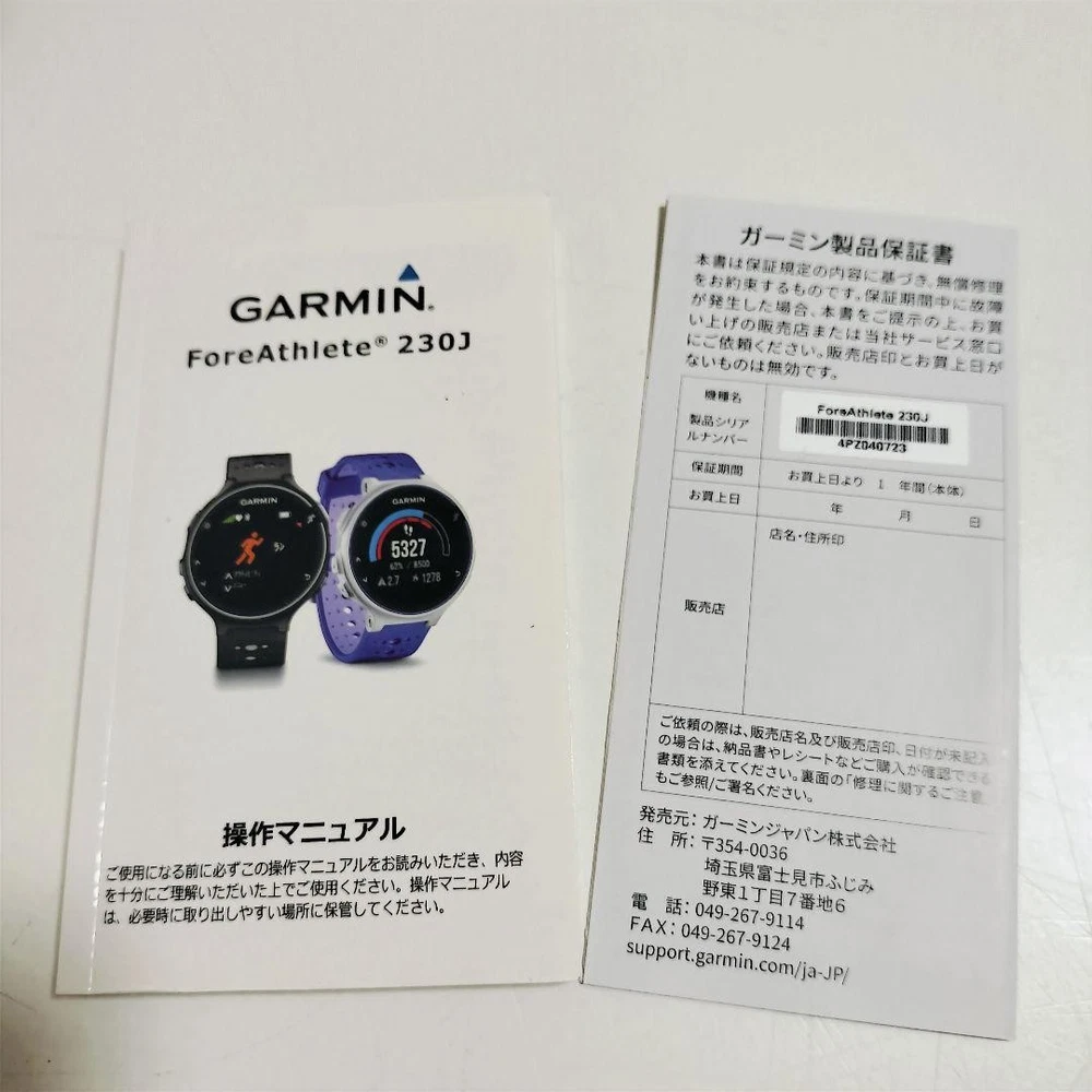 Item Title Garmin Forathlete 230J Box Included Payment Supports managed payments Please pay within 5 days after auction is finished. About Us We are located in Japan. It's our pleasure to make you happy by proposing our recommend item. If you have any questions or request about items, please feel free to ask us. International Buyers - Please Note: -Import duties, taxes, and charges are not included in the item price or shipping charges. These charges are the buyer's responsibility. -Please check with your country's customs office to determine what these additional costs will be prior to bidding/buying. -These charges are normally collected by the delivering freight (shipping) company or when you pick the item up - do not confuse them for additional shipping charges. -We do not mark merchandise values below value or mark items as - gifts - The US and International government regulations prohibit such behavior. Thank you for your understanding.