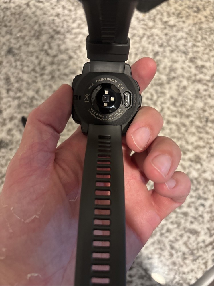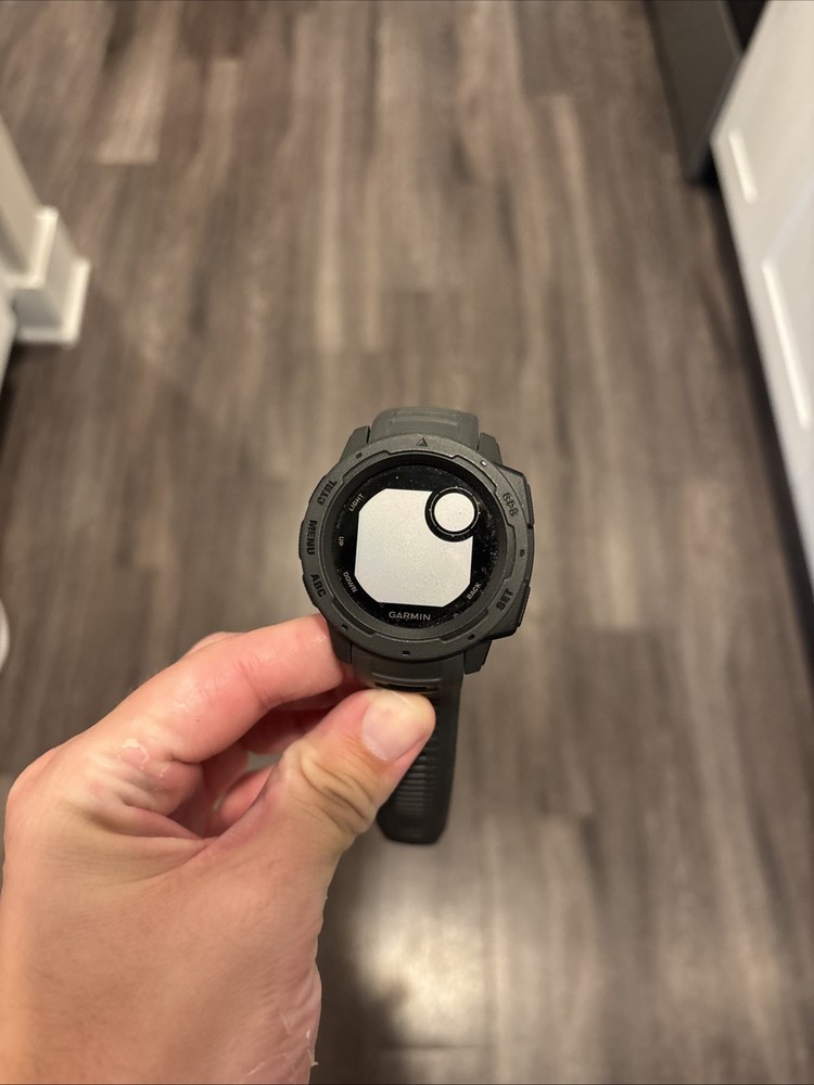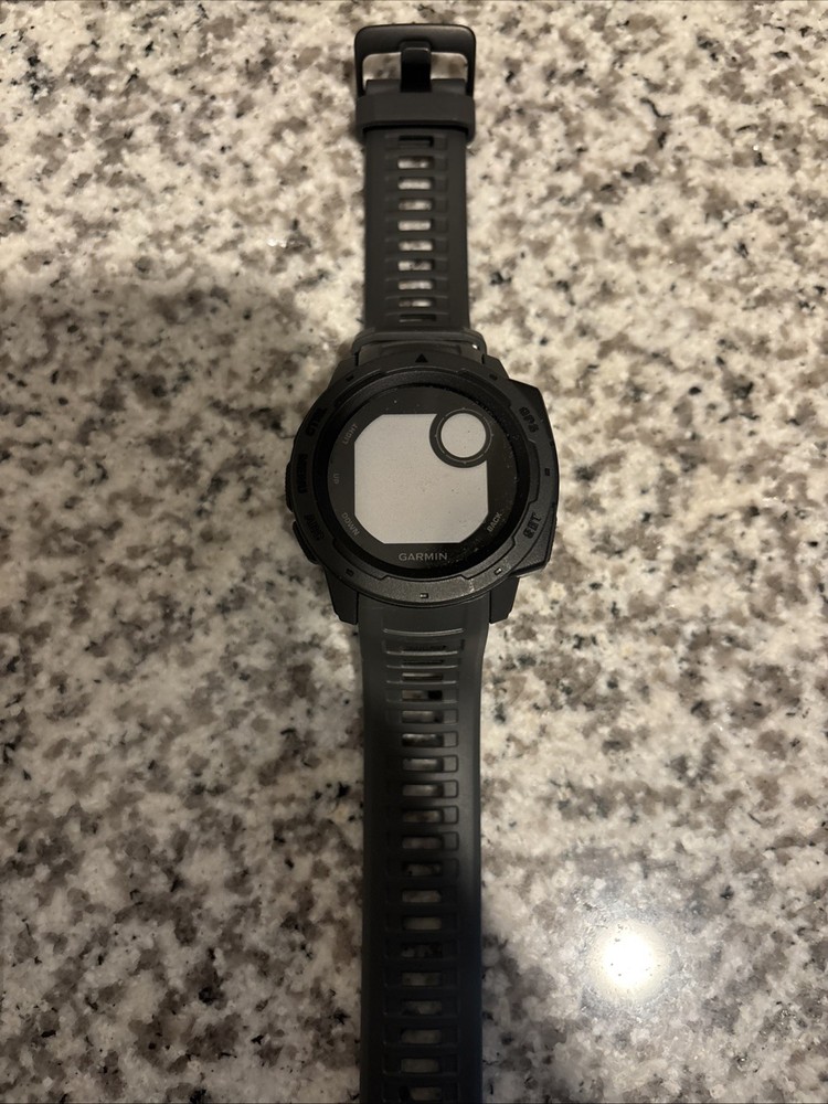 The Garmin Instinct Smartwatch in Graphite is a preowned unit that comes with a charger. This stylish smartwatch features a 128 x 128 display with a 1.27-inch size, making it easy to read. Powered by batteries with a battery life of up to 14 days, it is designed for both Android operating systems and supports both decimal and imperial measurement systems. With built-in GPS and heart rate monitoring capabilities, this smartwatch is perfect for running and jogging enthusiasts. The unit also comes with a one-year manufacturer warranty and is made in Taiwan.