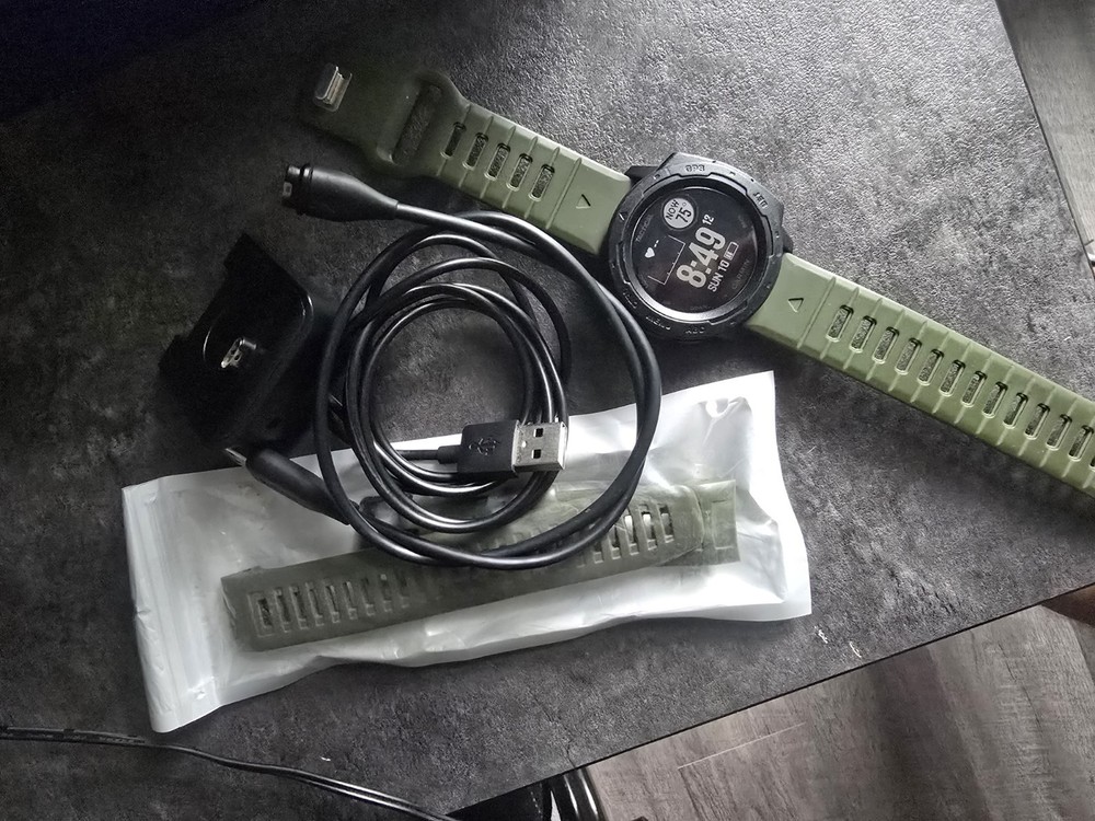 no scratches comes with screen protector, extra watch band,2 chargers. even has gps cant get lost in woods and track your return, Very clean and well taken care of.