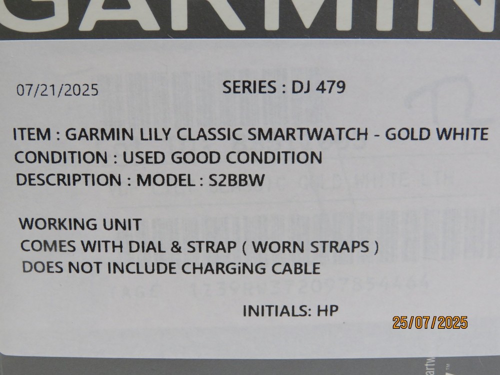 Garmin Lily Classic Smartwatch - Gold White [DJ479] Functional Condition: Tested and Functional. Cosmetic Condition: This is a Used Item and Normal Wear (Scuffs & Scratches) is Expected. Items included in this listing: DIAL STRAP Items NOT included in this listing: CHARGING CABLE Thank you for Shopping with Us! ENJOY Free Shipping in USA & Low Cost Shipping to CANADA! Terms of Sale NOTE: Our Listings only include items as pictured - Please do not assume any item is included if its not pictured. We will try our best to picture all items included in this listing as well as its cosmetic condition. We Guarantee & Stand Behind our product and commitment to provide you with o nly Original, Branded, OEM & Genuine Products Shipping A complete and correct shipping address is essential. We cannot guarantee the shipping address can be changed after checkout. Sales Tax will be charged to all Canadian & USA Buyers. Combined shipping is not guaranteed. We are unable to change any content of your order based on the eBay checkout note or PayPal message. Customers with shipping addresses outside of the U.S.A and Canada are responsible for all duties and import taxes. Please contact your customs for information Bidding All items are accurately described and pictured. Please ensure you are consciously bidding on the items as described. Payment Payments are expected at the time of purchase or in case of Auctions, at the end of auctions. Payments are managed via eBay Managed Payments Contact Us Your positive feedbacks are extremely valuable to us. If you have any concerns about your order, please contact us through eBay message to resolve any issues before leaving a negative feedback or opening a dispute. We will reply within 24 Hours Return Policy All items are in used condition unless specified.