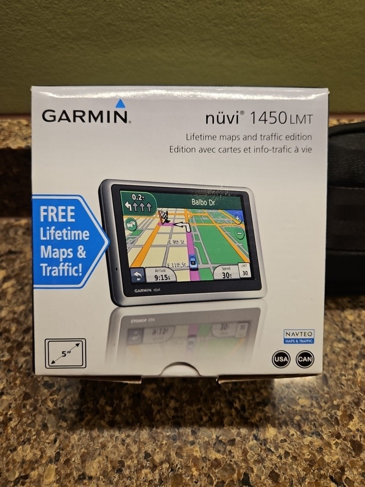 The Garmin Nuvi 1450 LMT GPS is a reliable vehicle navigation system with a 5" touch screen interface for easy use.