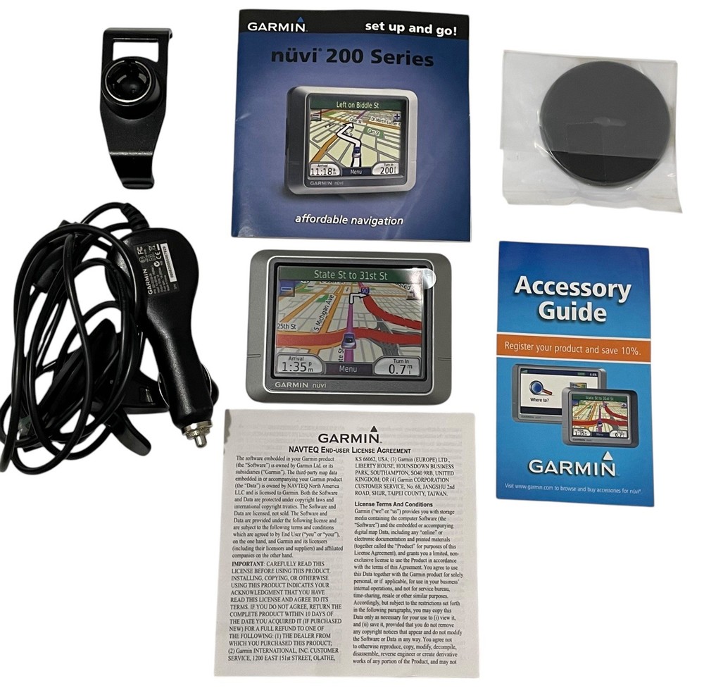 Garmin Nuvi 200 GPS Navigation System With U.S. Street Maps & Accessories.