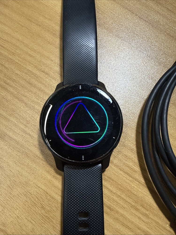 In fair condition. There are many nicks and scratches on the screen and along the bezel but none affect the functionality of the watch. This watch was used sparsely but for extreme expeditions such as alpine mountaineering. It functions as it did when it was new and it is a steal for anyone who wants a rugged watch for serious outdoors. The GPS works great and is perfect for marking the location of your camp when you have no cell reception and are venturing through the forest. Included is the watch and two chargers. It is the 43mm model and the battery life still gives you 7+ days on a single charge unless you are using the heavy battery draining features like continuous O2 monitoring. Overall, great watch from a functional standpoint priced for the condition.
