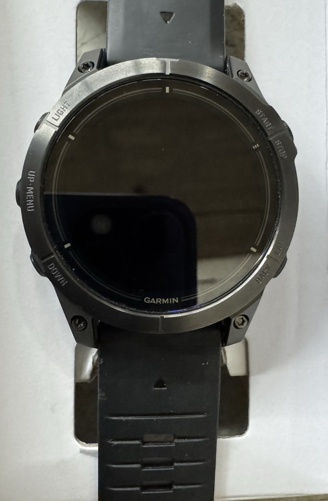 The Garmin epix Pro (Gen 2) Sapphire Edition GPS Watch in Carbon Gray/Black, 47mm is a high-performance fitness tracker designed for both indoor and outdoor activities. With a sleek black design and a durable titanium build, this watch offers a variety of features such as heart rate monitoring, distance tracking, and sleep recording. Its GPS capabilities allow for precise location tracking, while its battery life of up to 6 days ensures long-lasting use. Compatible with both iOS and Android operating systems, this watch is perfect for gym training, swimming, and running, making it a versatile and reliable option for fitness enthusiasts. Also has a built in flash light! These watches are like new condition! No scratches or blemishes. Any questions feel free to ask! :)