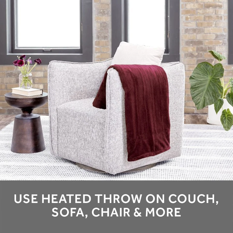Garnet Fleece Electric Heated Throw, Warming Throws with Auto-Shut Off
