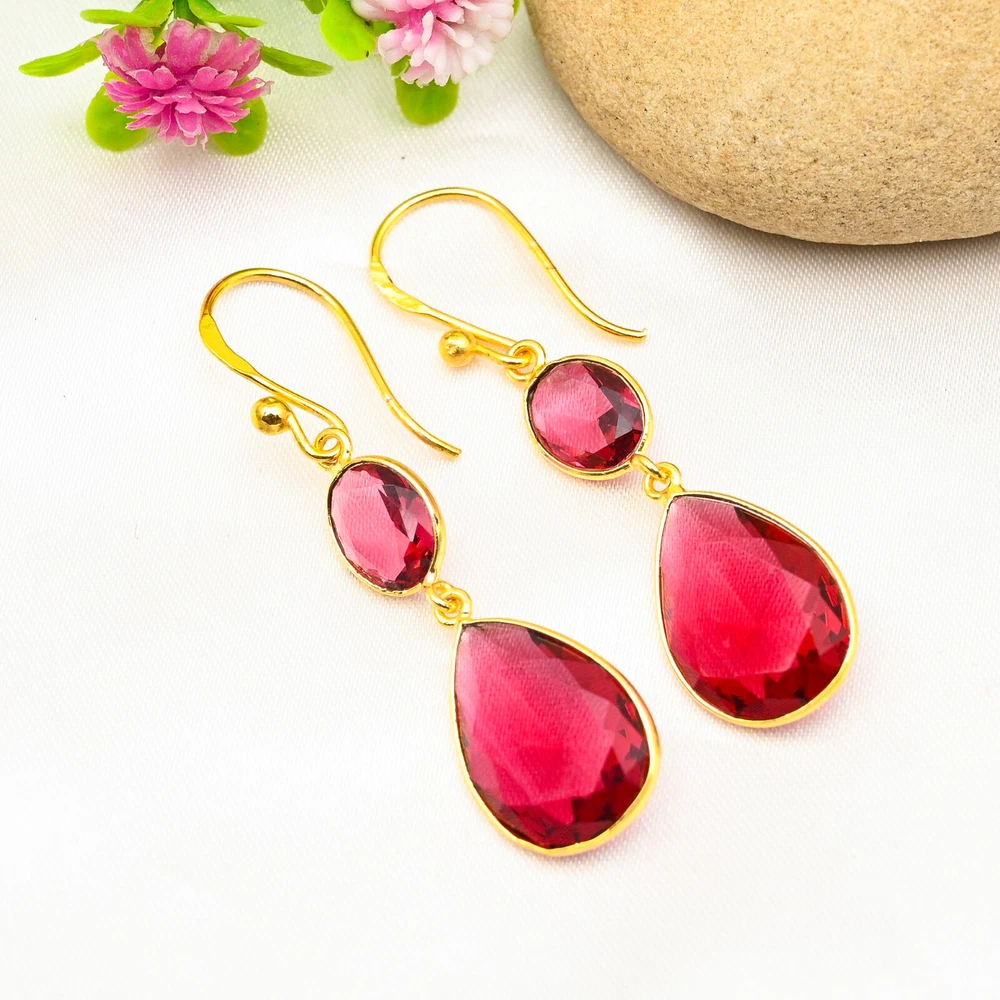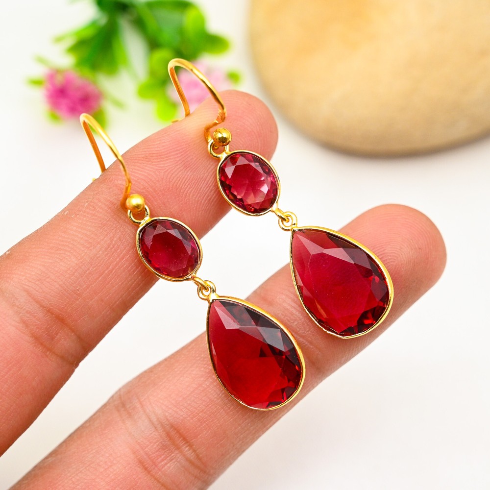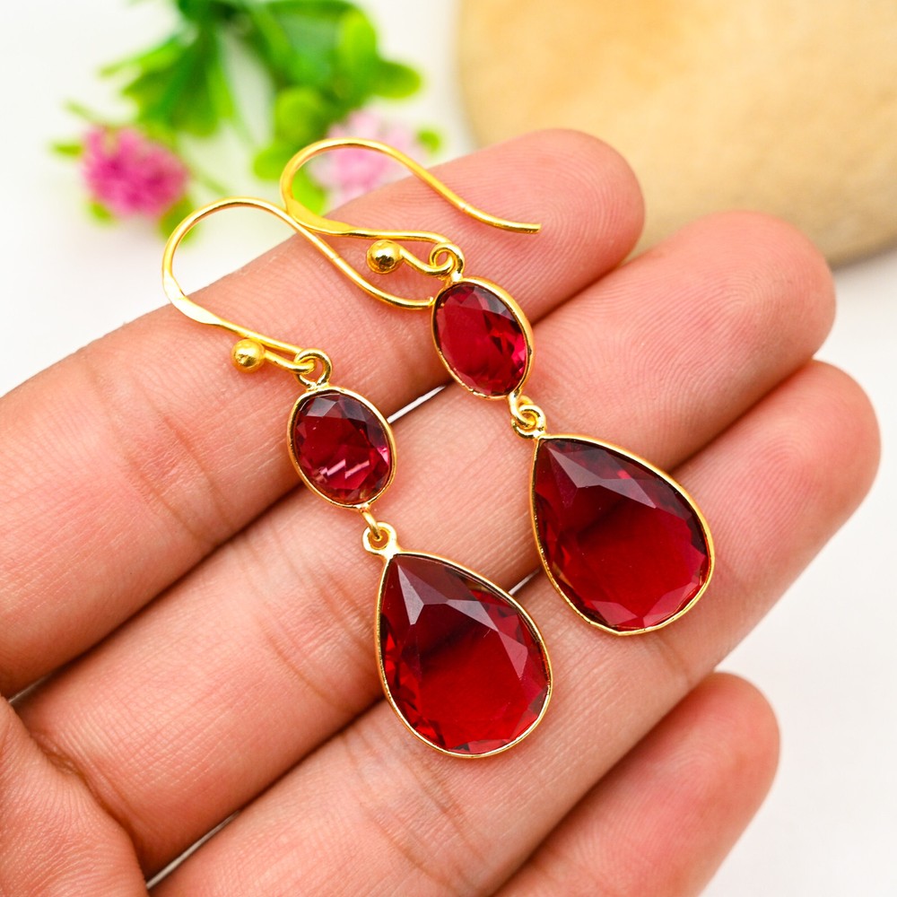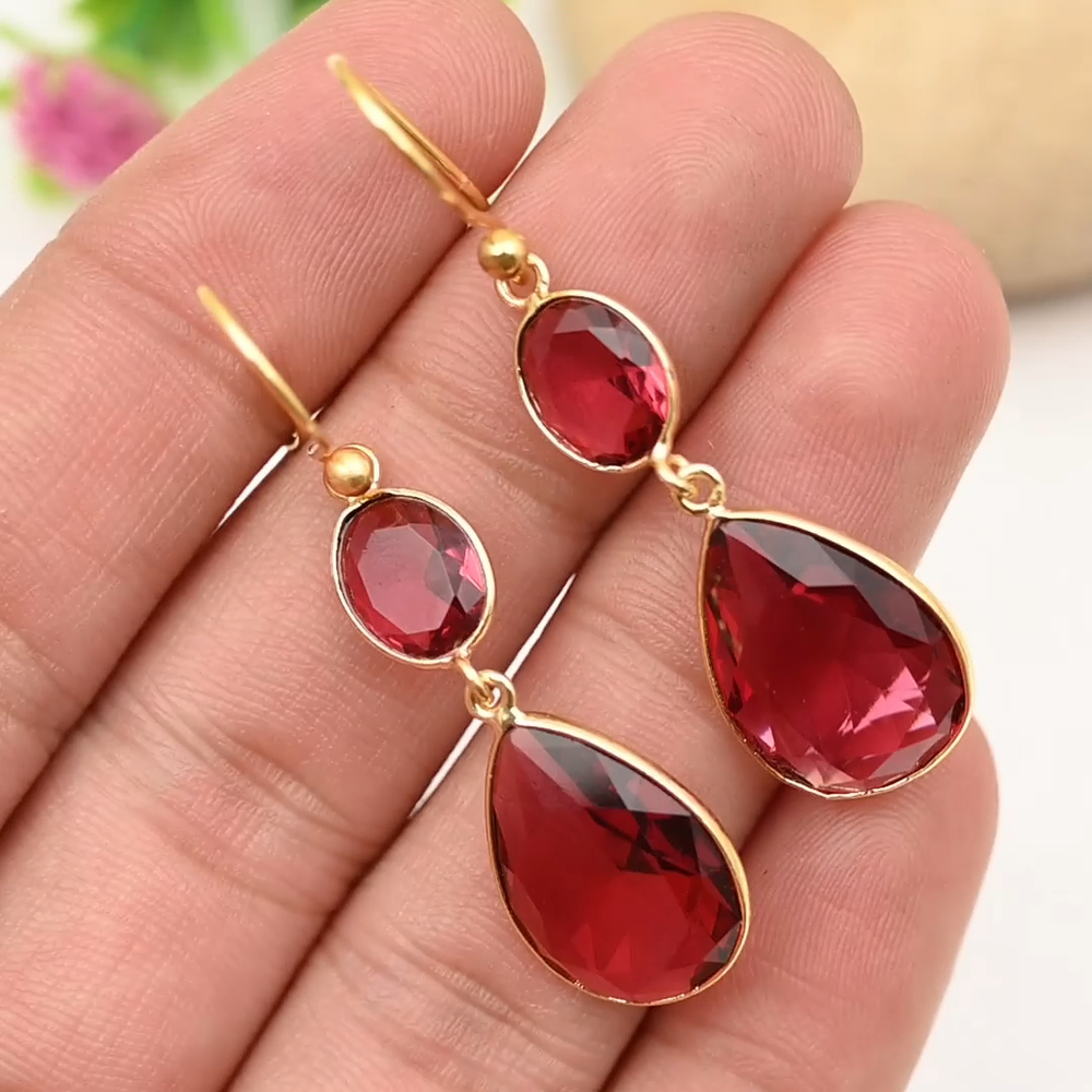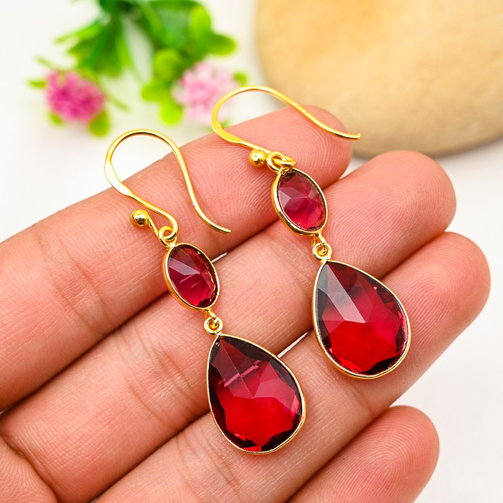 Main Stone Shape:PearItem Length:N/ACountry of Origin:IndiaNumber of Diamonds:N/ADiamond Color Grade:N/AMain Stone:GarnetCountry/Region of Manufacture:IndiaSetting Style:BezelOccasion:Anniversary, Birthday, Christmas, Engagement, Father's Day, Mother's Day, Valentine's Day, WeddingMain Stone Creation:NaturalColor:GoldSecondary Stone:GarnetType:EarringsBase Metal:Sterling SilverColored Diamond Intensity:N/ATheme:Beauty, Bohemian, Ethnic, Halloween, LoveNumber of Gemstones:4Main Stone Treatment:Not EnhancedCollection:HandmadeMetal:Sterling SilverTotal Carat Weight:10 carat and aboveBrand:HandmadeStyle:Dangle/DropShape:N/ACertification:N/AClosure:HookDiamond Clarity Grade:N/ACut Grade:ExcellentEar Area:LobeMetal Purity:925Main Stone Color:RedMaterial:Stone, Gemstone