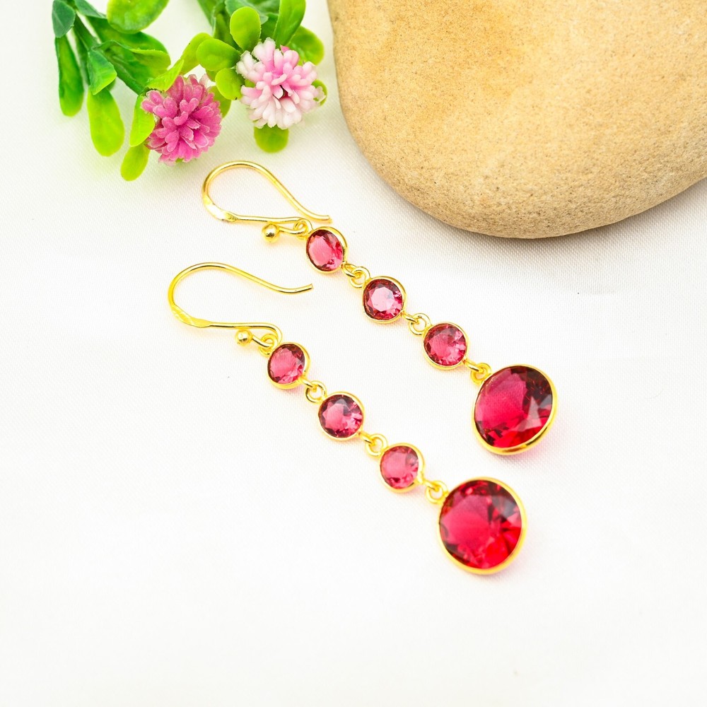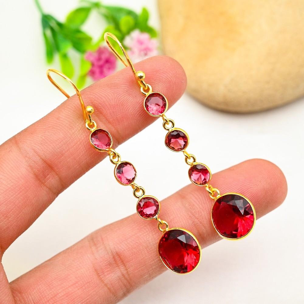 Garnet Sterling Silver Dangle Earrings - Handmade Party Jewelry Gift for Women