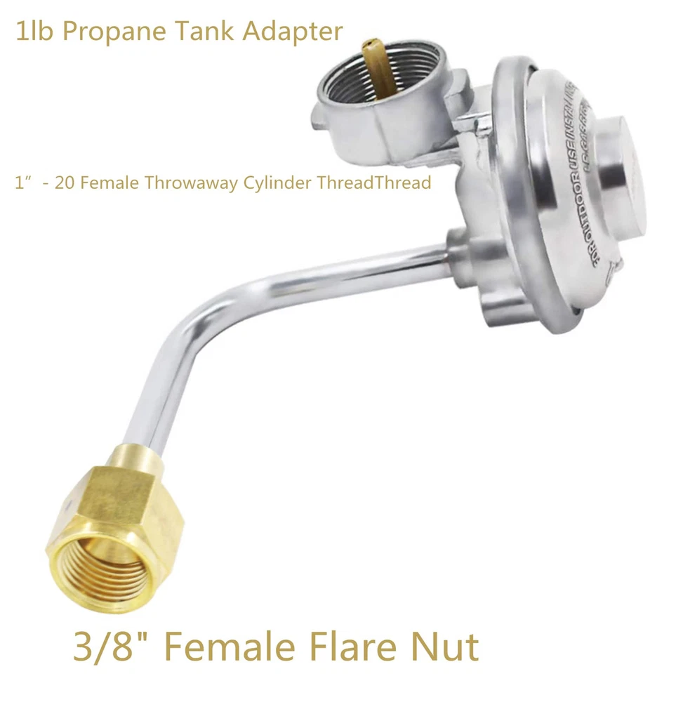 👍Replaces portbale 1lb gas griddle regulator for outdoor cooking camping or tailgating ,black/ red royal PD 1301S protable 24 inch 3 burner table top gas grill griddle and pit boss grill 75275 stainless steel burner protable grill etc 👍 Lp gas regulator inlet is 1”X 20 female throwaway cylinder thread, use to connect 16.4 oz prop bottle ,The outlet is 3/8" (5/8"-18 UNF) female flare fitting use for connect to bbq grill. outdoor heater . fire pit table etc has 3/8 male flare thread adapter. 👍Gas flow: 25000BTU/hr, outlet pressure:11"W.C, gas regulator allows a certain amount of fuel to the griddle, further ensures a stable and secure gas pressure during cooking. 👍Gas grill regulator can be with QCC1.POL propane hose adapter connected to 5lb-40 lb propane tank cylinder use 👍Made of high quality stainless steel and brass, which provides greater durability.Easy to install, no tools are required to replace this item.Allows you to amplify the quality of your camping or traveling experiences