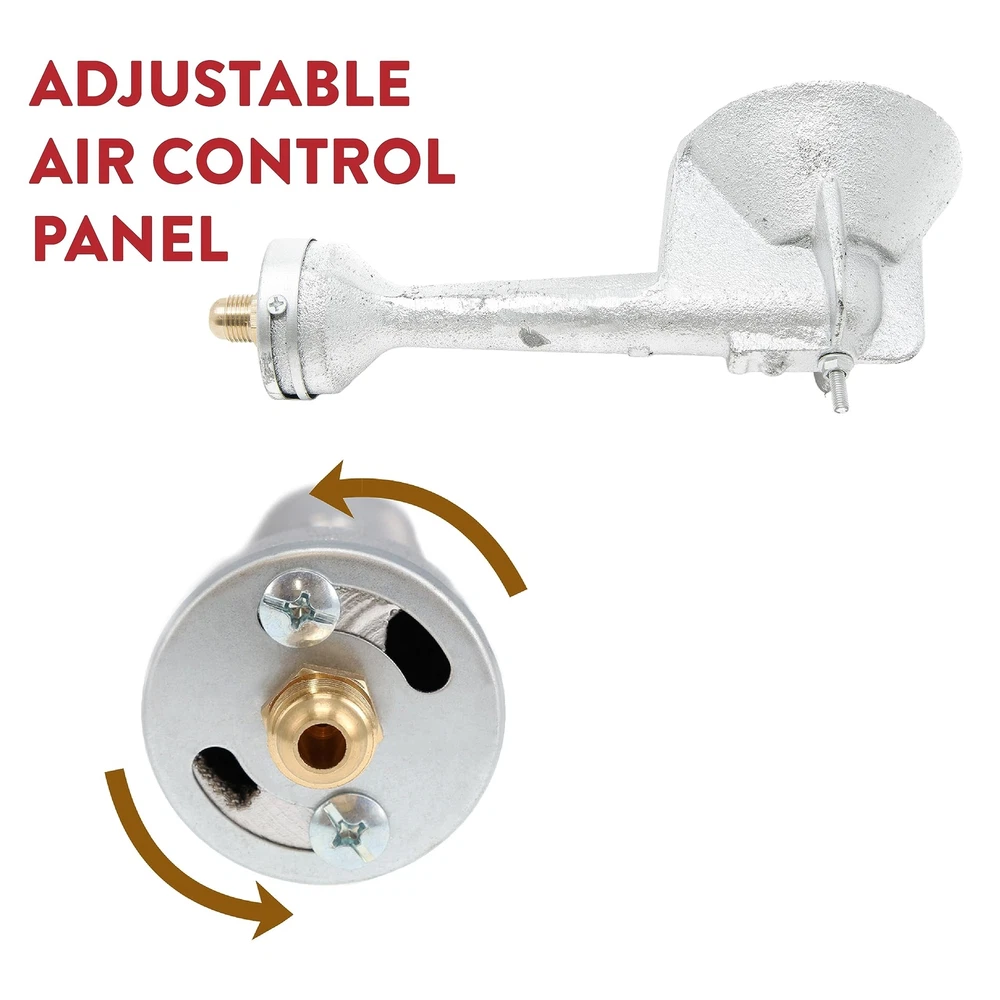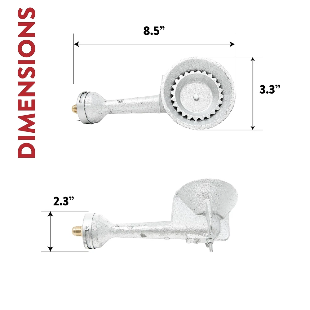 GasOne 50200+2109 High Pressure Cast-Iron Round Burner Head with Brass Fitting O, Regulator & Hose Product Details Size: Burner Head + Regulator & Hose Brand: Gas One MPN: 50200+2109 UPC: 859176001119 EAN: 0859176001119 Brand: Gas One Fuel Type: Liquefied Petroleum Gas Material: Aluminum Product Dimensions: 8.5"L x 3.3"W x 2.3"H Power Source: Propane Item Weight: 1.5 Pounds UPC Global Trade Identification Number: 19 Brand: Gas One Fuel Type: Liquefied Petroleum Gas Material: Aluminum Product Dimensions: 8.5"L x 3.3"W x 2.3"H Power Source: Propane Item Weight: 1.5 Pounds UPC: 859176001119 Global Trade Identification Number: 19 Item Weight: 1.5 pounds Manufacturer: GAS One Country of Origin: China Item model number: 50200+2109 Is Discontinued By Manufacturer: No Includes - cast iron high pressure burner head and 0-20 psi high Pressure regulator and 4 ft hose Universal replacement burner - With our gas one burner head, you can use it with high pressure or low pressure regulators (high pressure regulator is recommended for high output) Brass fitting orifice Block - includes brass fitting orifice Block & air Shutter and spring Heat resistant - cast iron will not melt easily compared to aluminum construction To be used with propane only Universal replacement burner - with our gas one burner head, you can use it with high pressure or low pressure regulators (high pressure regulator is recommended for high output) brass fitting orifice block - includes brass fitting orifice block & air shutter & spring heat resistant - cast iron will not melt easily compared to aluminum construction